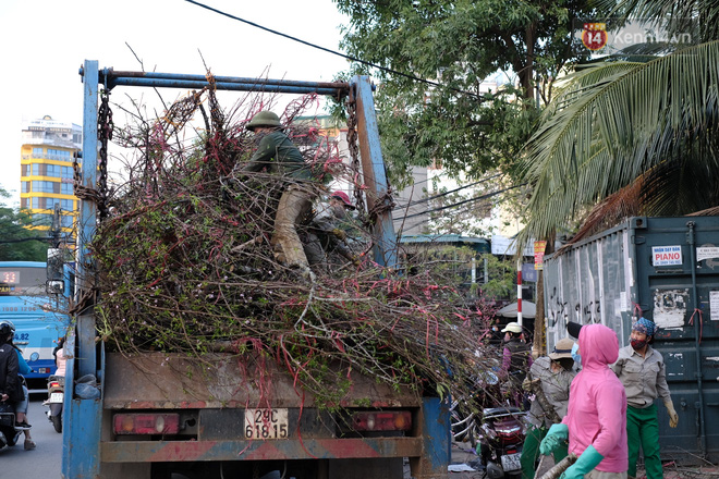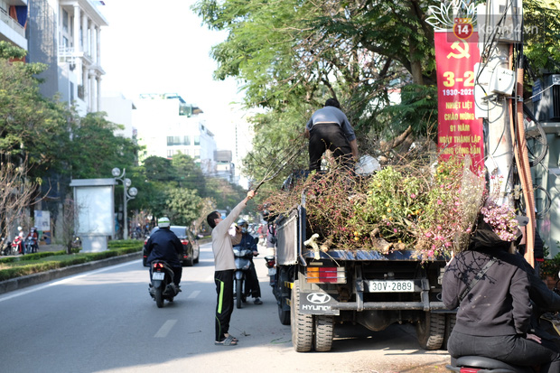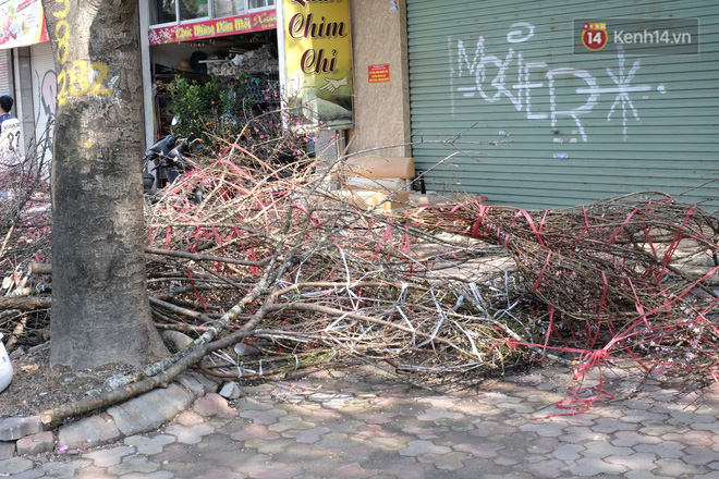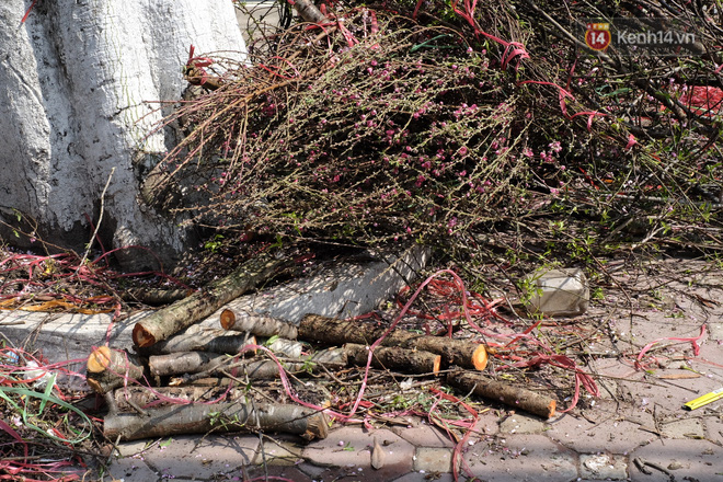 Theo ghi nhận vào chiều 30 Tết, lượng người đi mua sắm Tết tại một số tuyến phố chuyên buôn bán cây cảnh đã bắt đầu vãn dần. Các tiểu thương cũng bắt đầu xếp những loại cây cảnh lớn như đào thế, quất thế, bưởi cảnh,… lên xe, chở về vườn trồng lại chờ sang năm bán tiếp. Riêng đào răm, cành đào nhỏ hoặc hoa cắm đã bung nở hết, không thể tiêu thụ được thì tiểu thương gom lại một góc và đem ra bãi tập kết vứt bỏ.