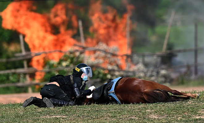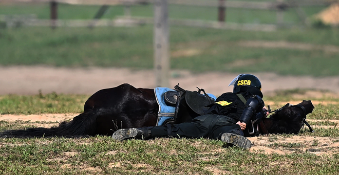 | Video: Kỵ Binh Cảnh sát cơ động với những màn biểu diễn đổ người bắn súng ‘nằm giả chết’ tấn công tội phạm. |