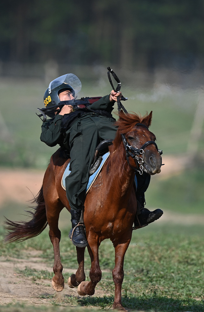 Các cán bộ, chiến sĩ được tuyển chọn để thực binh các tình huống này là những người thông thạo kỹ năng sử dụng súng kết hợp với khả năng cưỡi ngựa thuần thục.