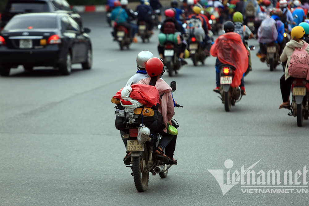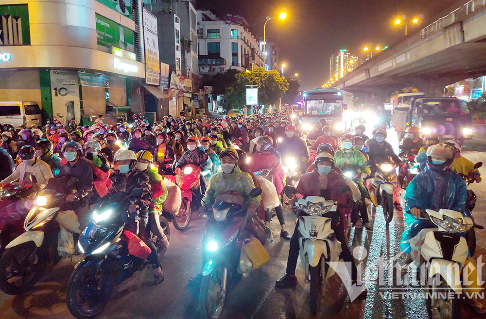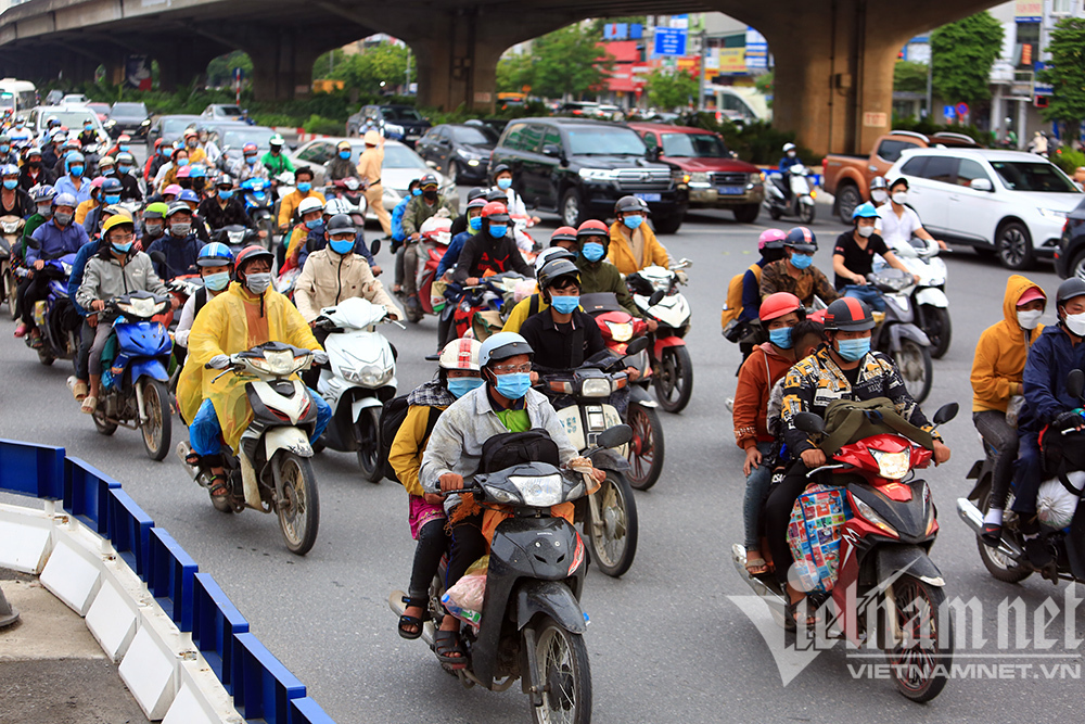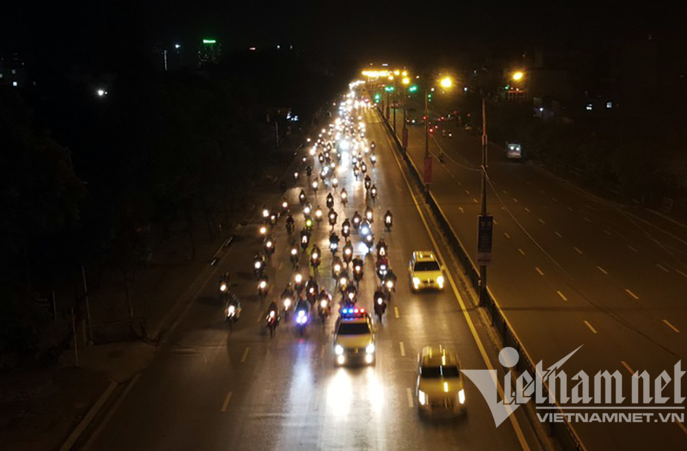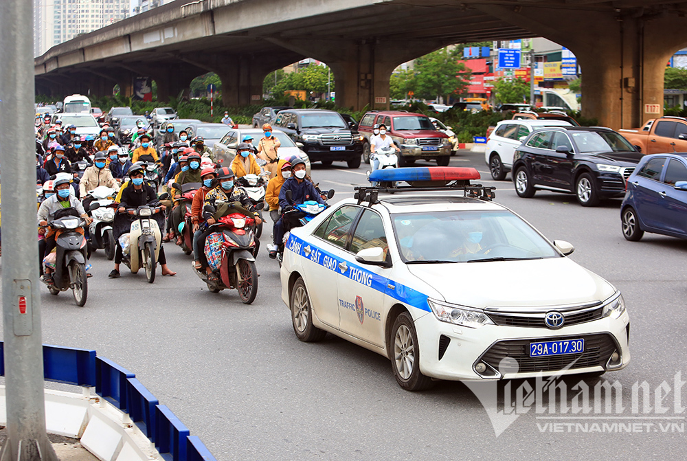 Sau đó đoàn người được CSGT đội 7 - Công an TP Hà Nội hướng dẫn đi theo hàng, đảm bảo giữ khoảng cách, bắt đầu đi qua địa phận Thủ đô hướng về QL32 - cầu Trung Hà để về các tỉnh phía Bắc.