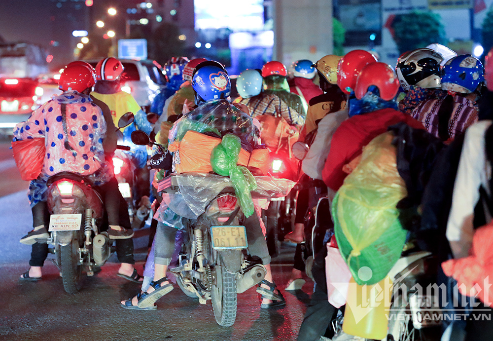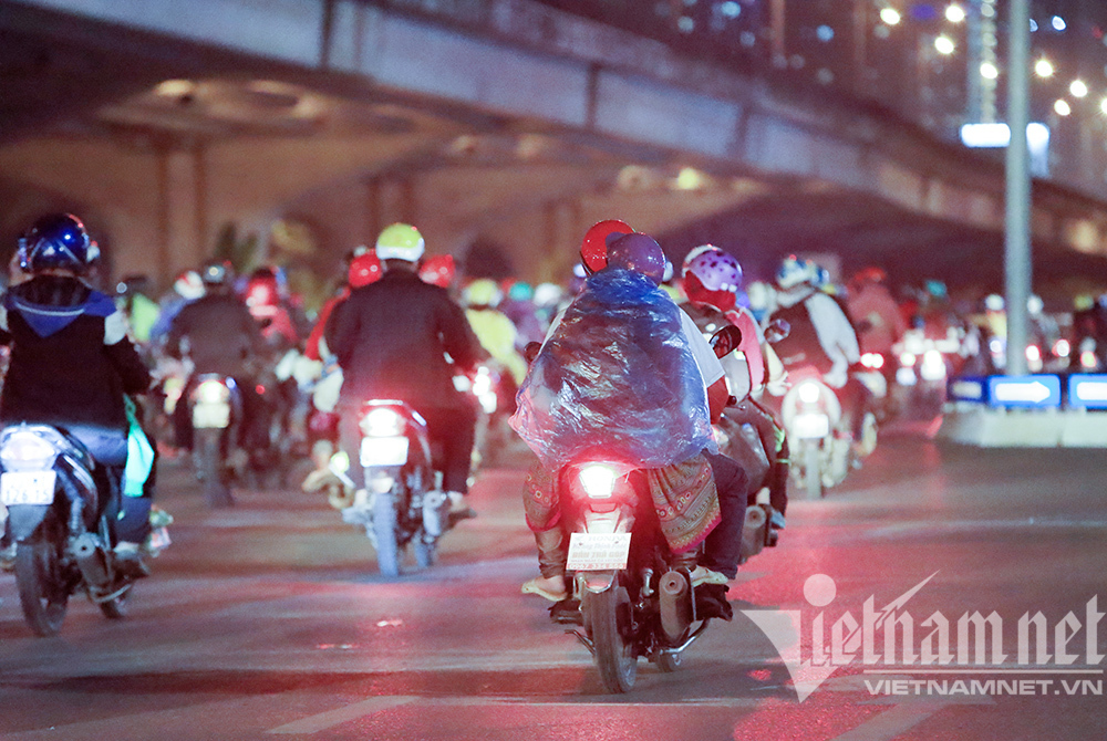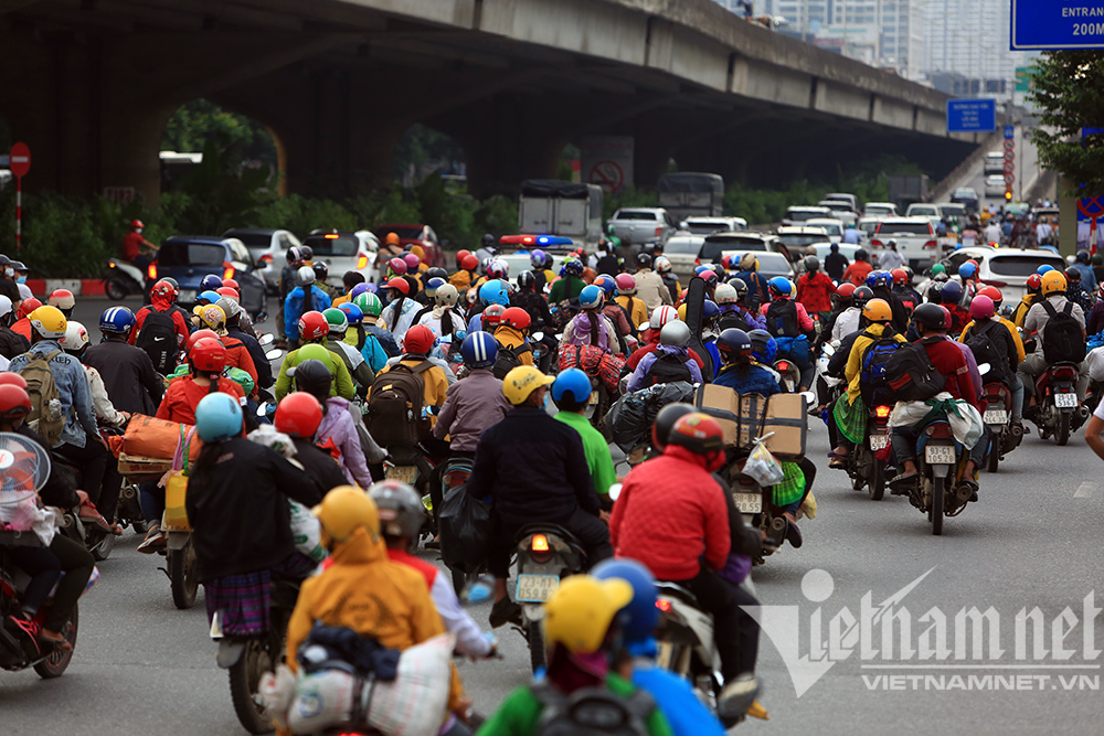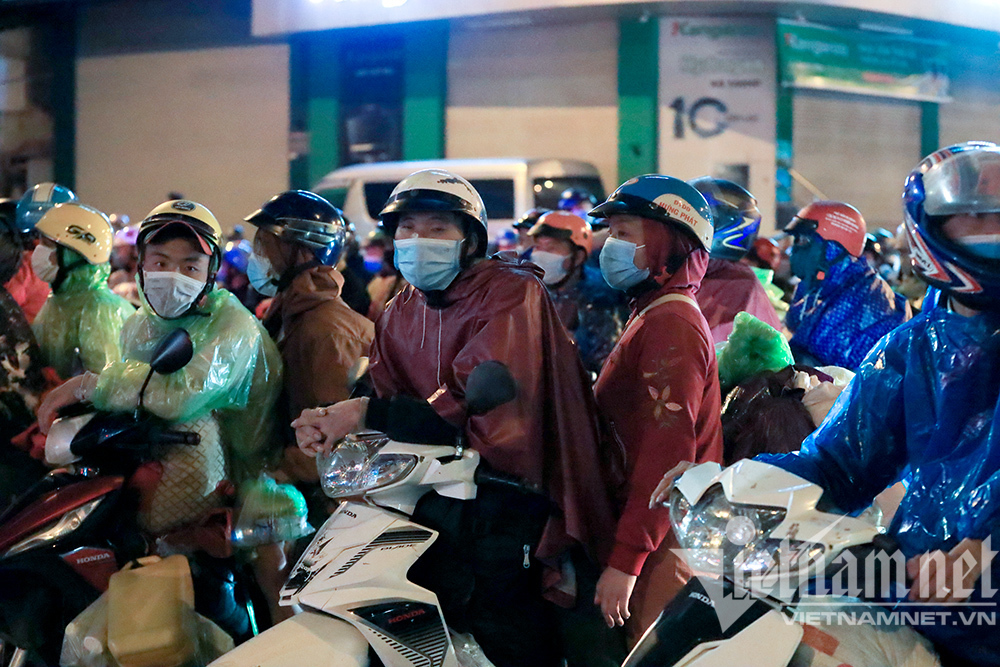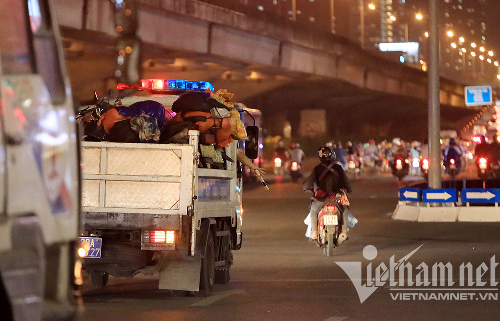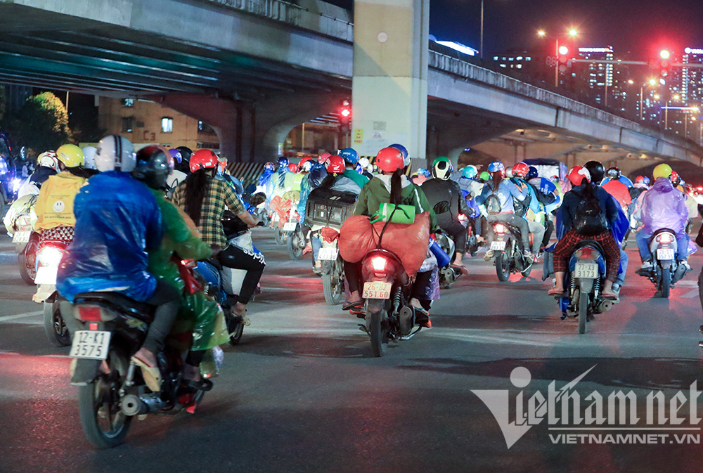 Sau đó đoàn người được CSGT đội 7 - Công an TP Hà Nội hướng dẫn đi theo hàng, đảm bảo giữ khoảng cách, bắt đầu đi qua địa phận Thủ đô hướng về QL32 - cầu Trung Hà để về các tỉnh phía Bắc.