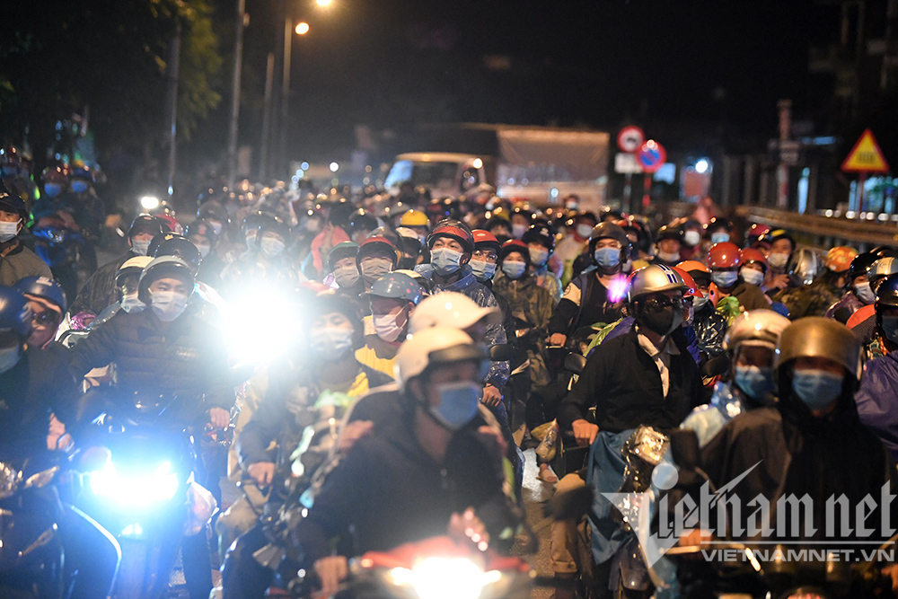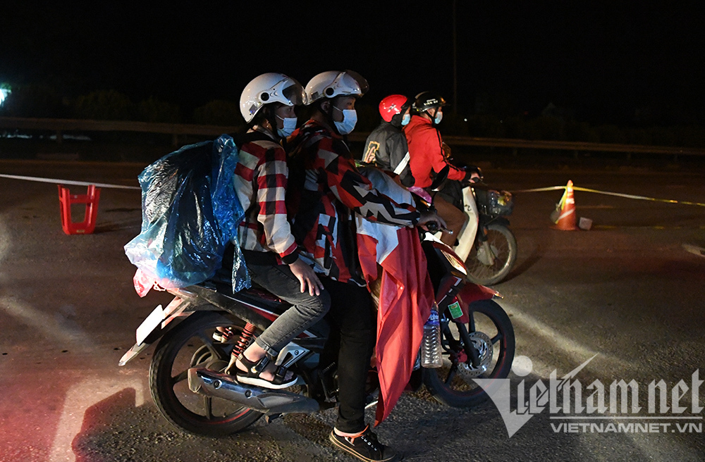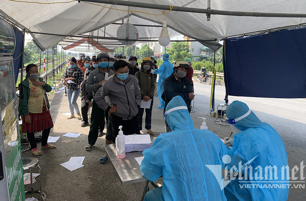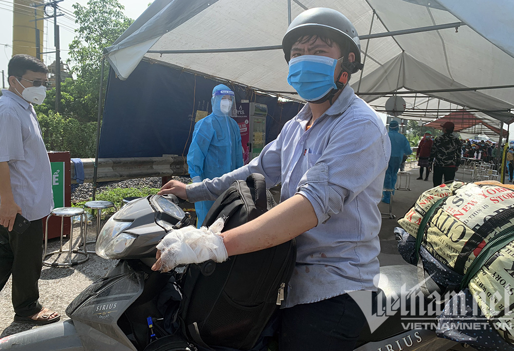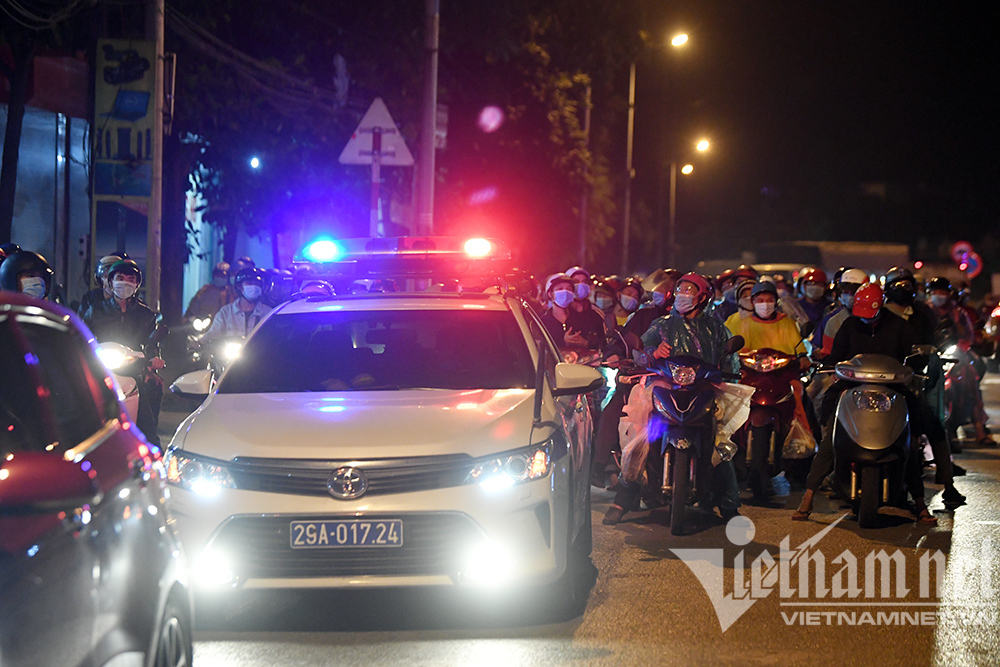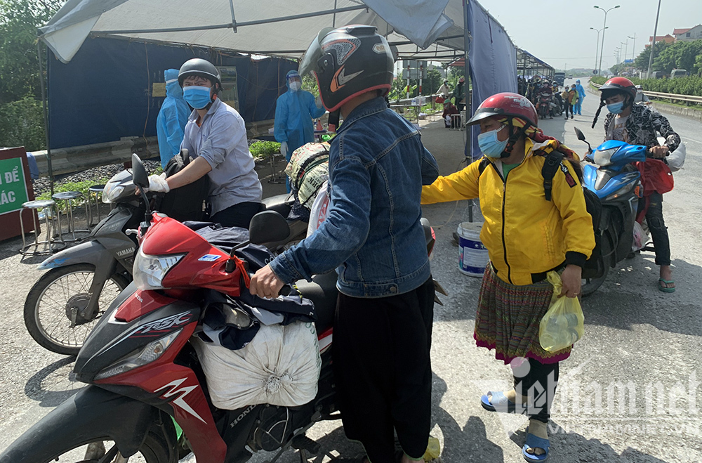 Chiều 5/10, khi đoàn xe hàng trăm người đến chốt kiểm soát của Công an TP Hà Nội trên quốc lộ 1A đã được lực lượng chức năng hướng dẫn khai báo y tế, sàng lọc từng nhóm người.