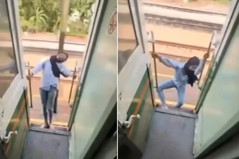 Đoạn video ghi lại sự việc được đăng tải vào cuối tháng 9. Hình ảnh từ video cho thấy, cụ ông đu bám ở cửa lên xuống trong khi đoàn tàu vẫn đang chạy với tốc độ rất nhanh.