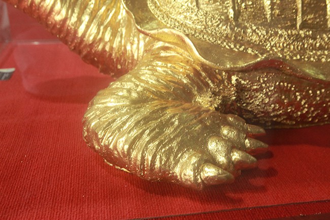 Được làm bằng gốm và mạ vàng 9999 bên ngoài, cụ rùa của một nghệ nhân ở Bát Tràng được "hét" giá tới hơn 100 triệu đồng