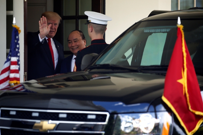 Tổng thống Mỹ Trump đứng chờ ở cửa để đón Thủ tướng Nguyễn Xuân Phúc tại Cánh Tây, Nhà Trắng. ![]() Tổng thống Mỹ Trump tiếp Thủ tướng Nguyễn Xuân Phúc trong Phòng Bầu dục và cho biết hai nhà lãnh đạo sẽ thảo luận nhiều vấn đề quan trọng như thương mại và Triều Tiên. Ảnh: Reuters ![]() Thủ tướng Nguyễn Xuân Phúc nói rằng quan hệ Việt Nam - Mỹ trong lịch sử đã có những lúc thăng trầm nhưng nay là đối tác toàn diện của nhau. Thủ tướng hoan nghênh việc Tổng thống Mỹ Trump đến Việt Nam dự hội nghị APEC vào tháng 11 và mời ông thăm chính thức Việt Nam vào dịp này. Ảnh: Reuters