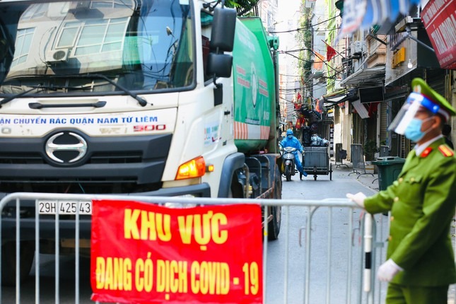 Đơn vị vận chuyển và xử lý rác của quận Nam Từ Liêm cũng đã điều xe vào tận nơi thu gom rác, phun khử khuẩn vận chuyển đi đảm bảo công tác phòng, chống dịch an toàn.