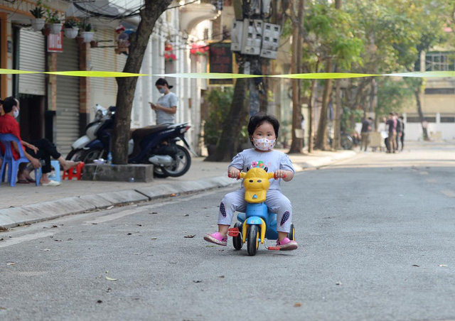 Hôm nay là ngày thứ 6 mà 195 người dân từ số nhà 79 - 137 phố Trúc Bạch cách ly dưới sự giám sát của nhiều cơ quan chức năng. Nhiều người dân đã ra cổng vui chơi nên nếu không có rào chắn thì ít ai nghĩ rằng nơi này đang bị cách ly.