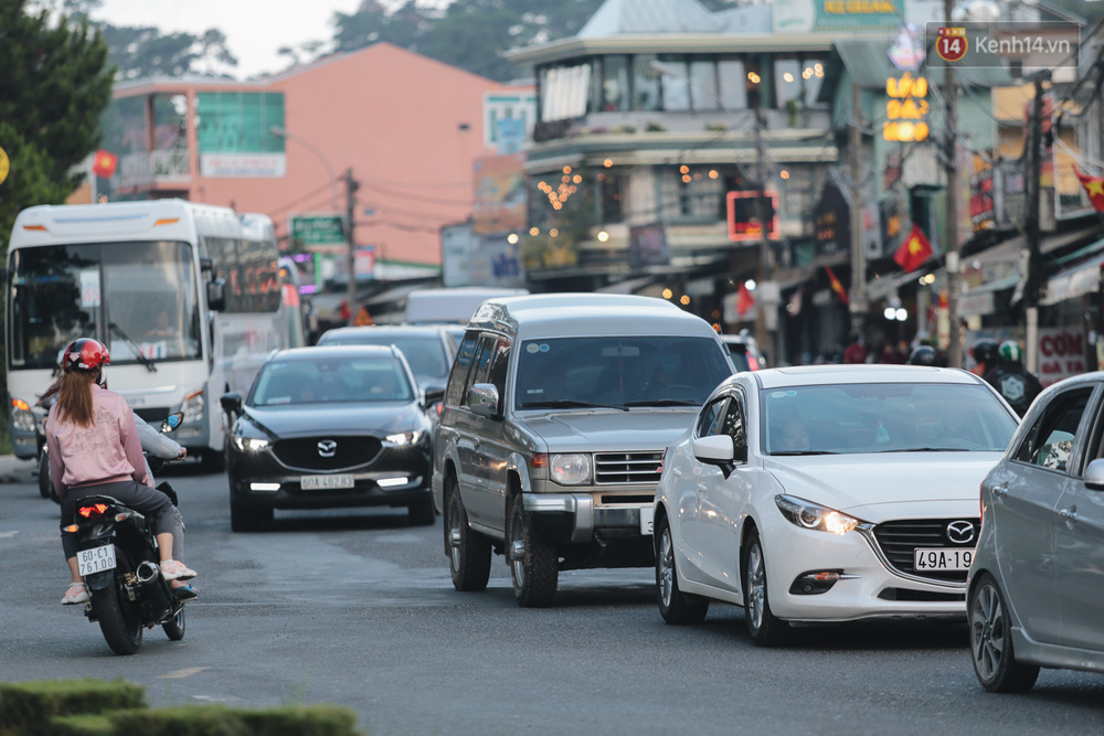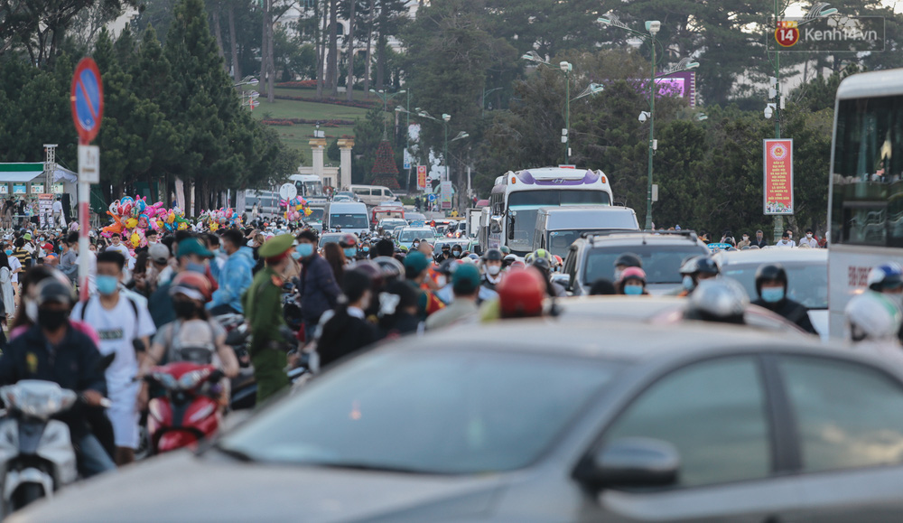 Lực lượng chức năng TP. Đà Lạt khá vất vả để điều tiết số lượng lớn phương tiện đổ ra đường cùng lúc.