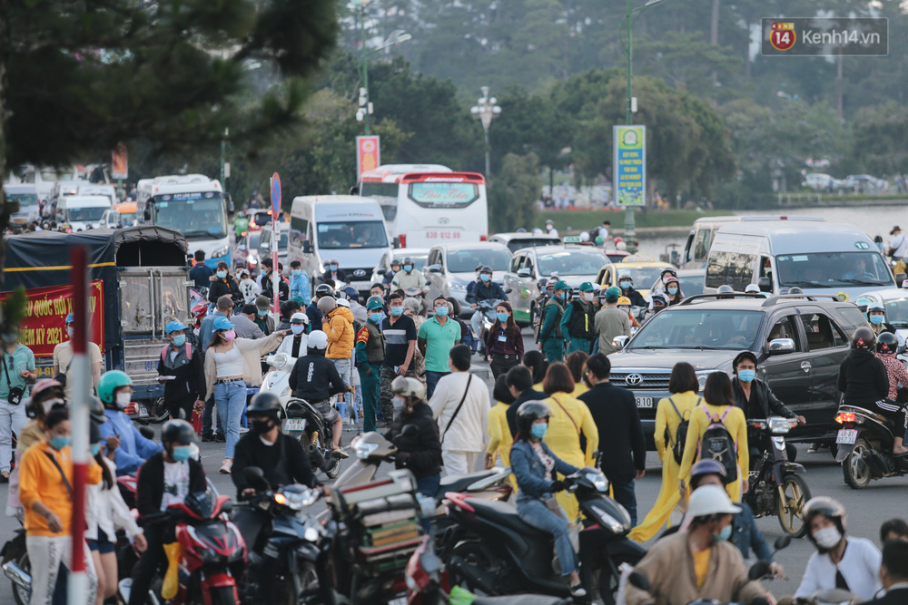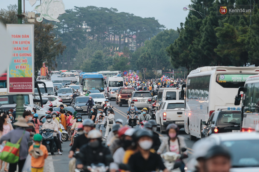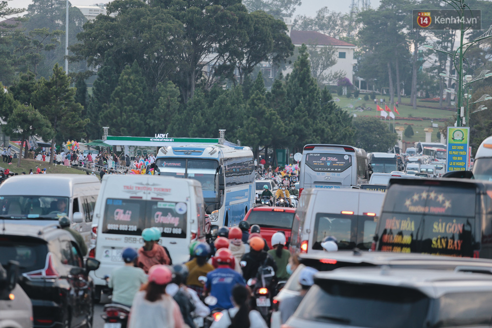 Do số lượng người đổ ra đường cùng thời điểm khiến một số tuyến đường hướng về quảng trường Lâm Viên tắc cứng.