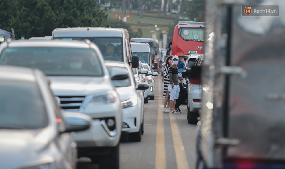 Quảng trường đông đúc, dưới lòng đường thì chật kín phương tiện nối đuôi nhau nhích từng chút. Nhiều khách tỏ ra khá mệt mỏi vì "dính" kẹt xe từ cửa ngõ đến trung tâm TP. Đà Lạt.