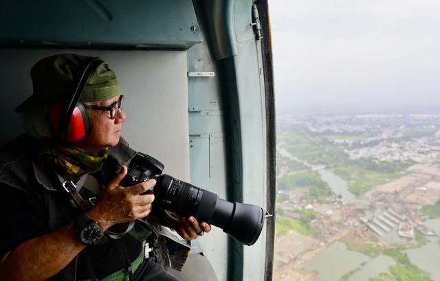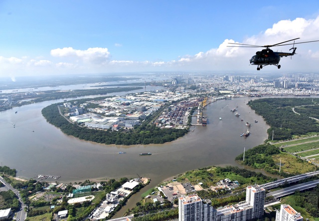 Tiếng gầm rú của động cơ trực thăng hòa cùng tiếng gió mạnh và thời tiết oi bức của miền Nam, mọi thứ dưới cánh bay dường như nhỏ bé và trải dài như một bức tranh đầy màu sắc.