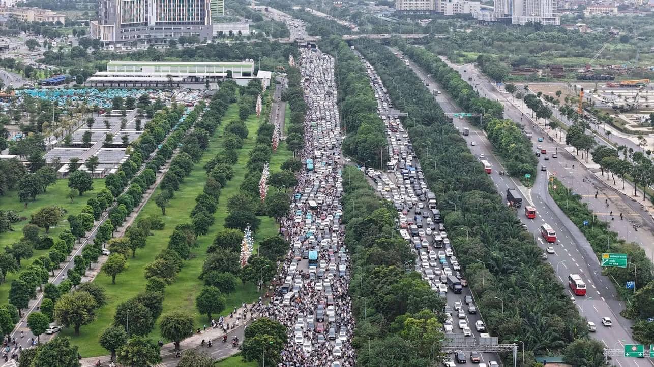 | Đại lộ Thăng Long ùn tắc nghiêm trọng hàng chục km sau bão số 3, nhiều người đi làm từ sáng vẫn chưa đến nơi |