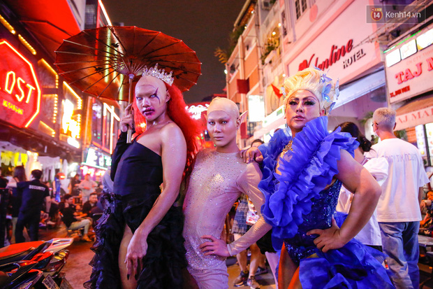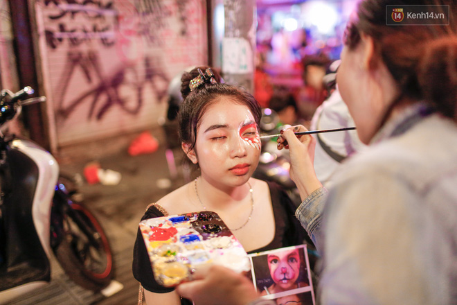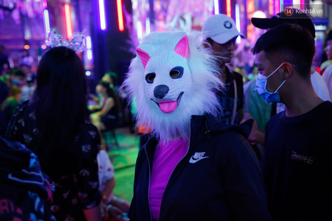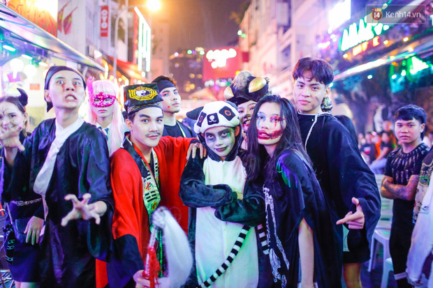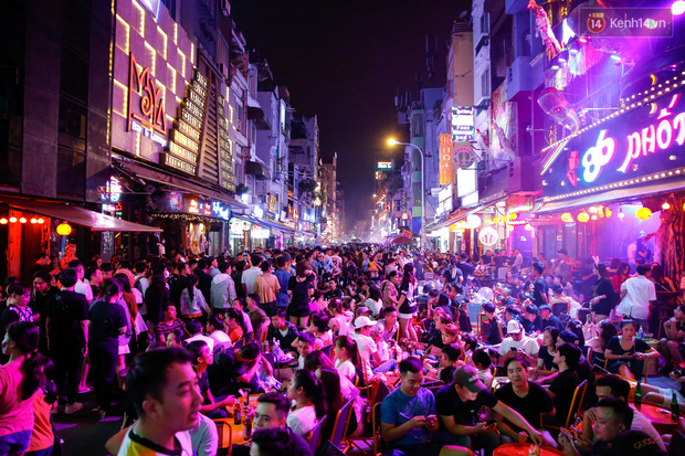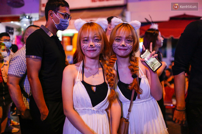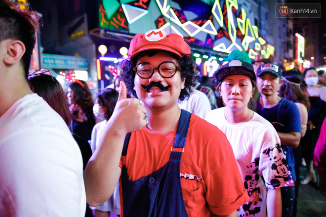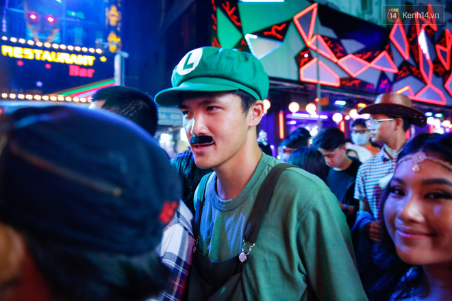 Sau 22h, Bùi Viện thực sự "vỡ trận". Là khu trung tâm tiệc tùng nhộn nhịp nhất Sài Gòn, phố đi bộ Bùi Viện đông kín người đổ về trong tối nay. Không ít bạn trẻ lên đồ hoá trang cầu kỳ hoà vào dòng người giữa phố:
