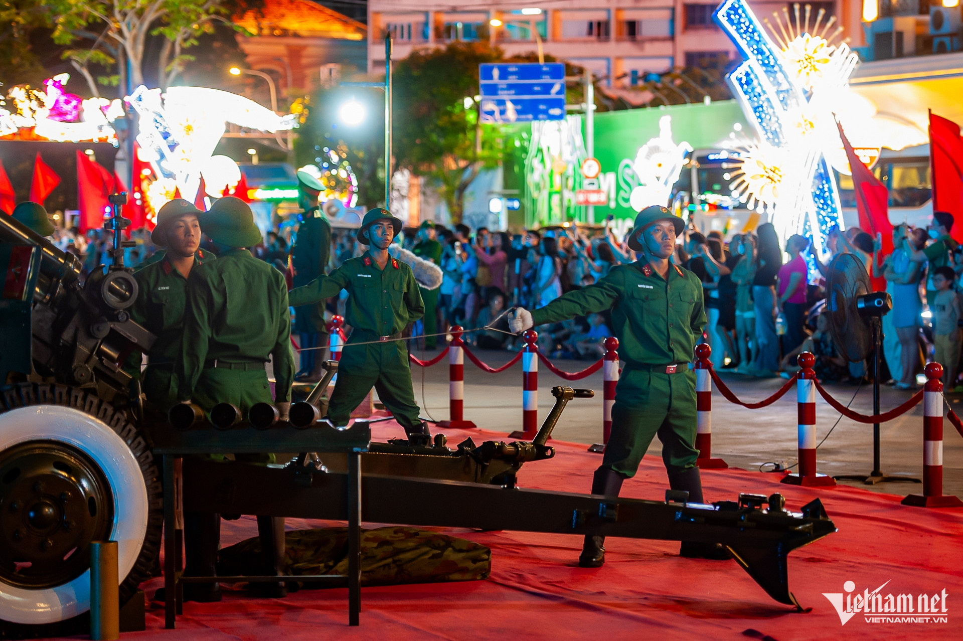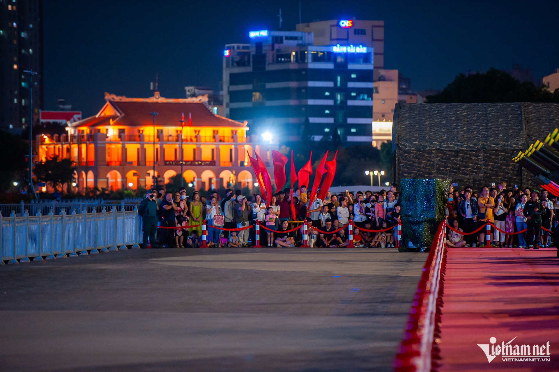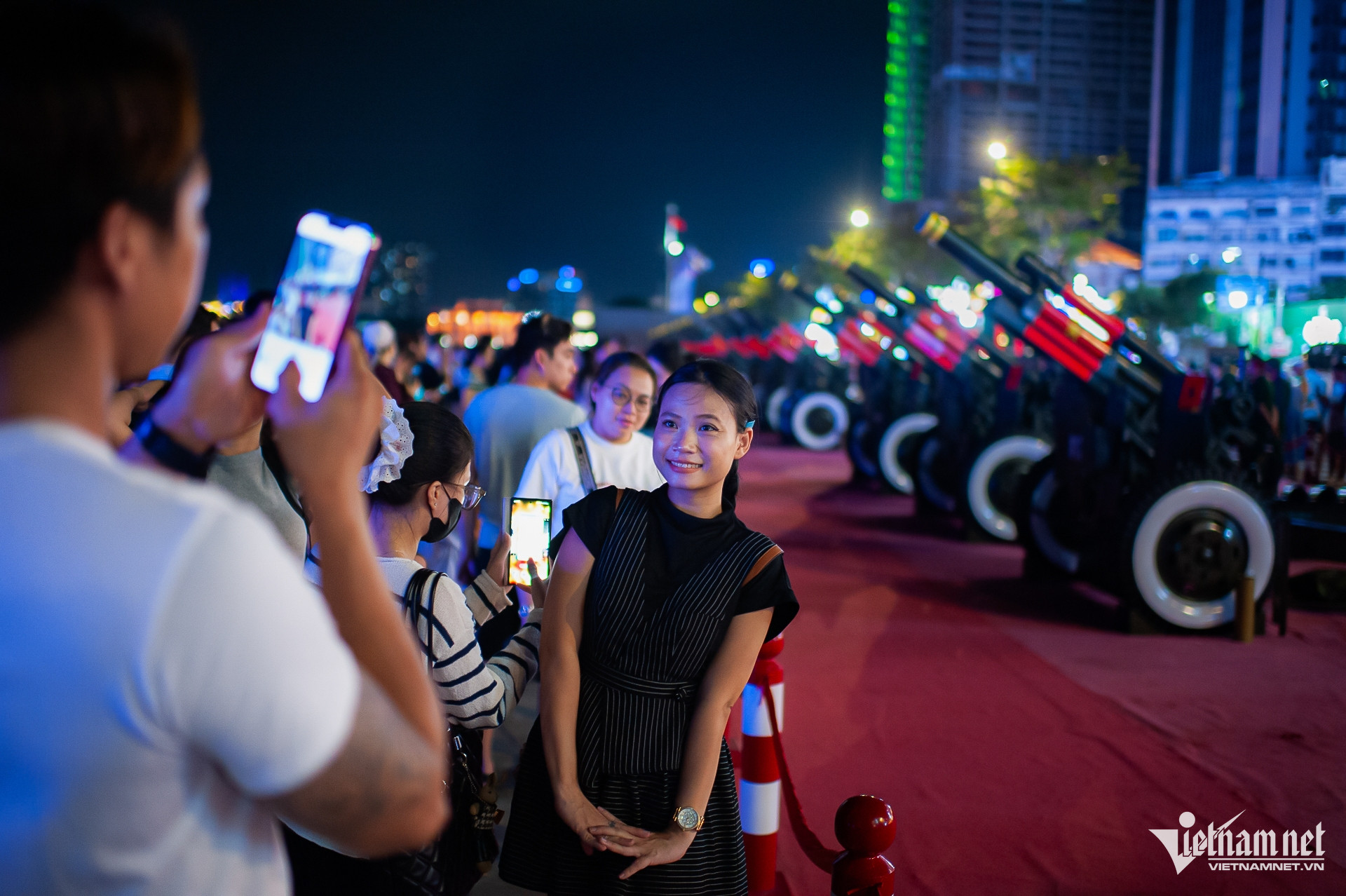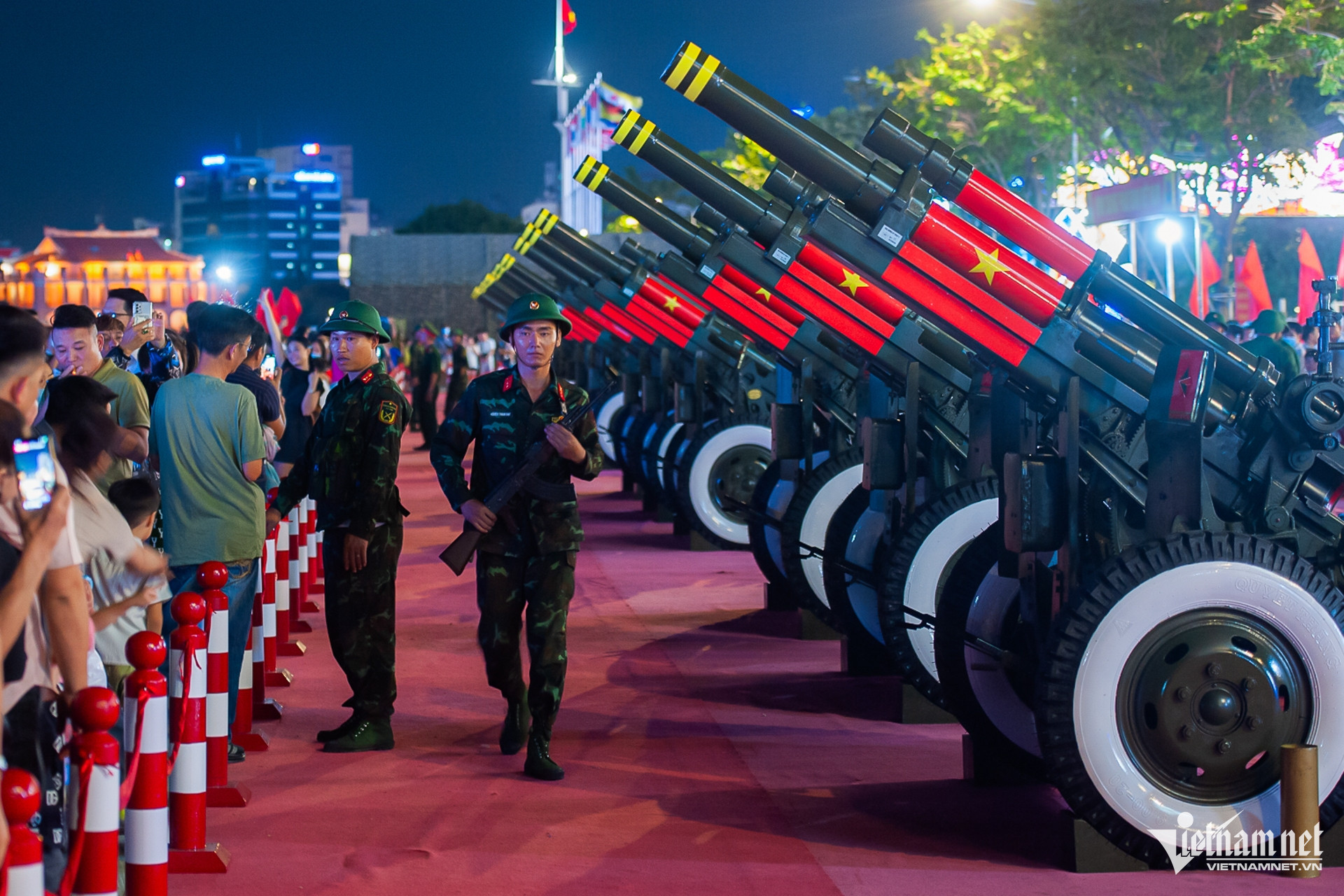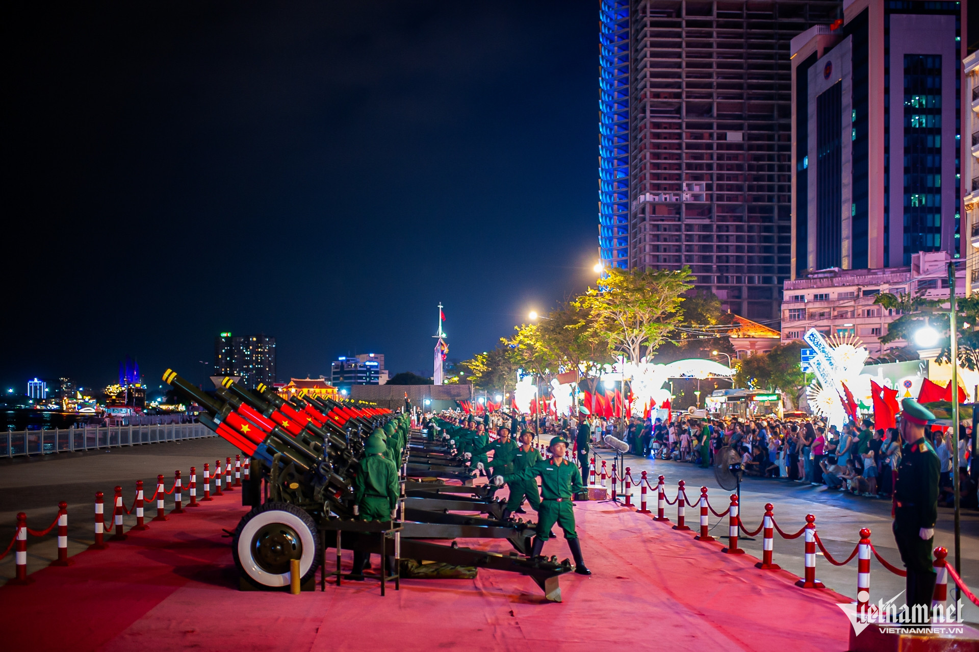 Tối 8/4, đông đảo người dân, du khách tập trung tại bến Bạch Đằng để được xem 15 khẩu đại bác khai hỏa chuẩn bị cho Lễ kỷ niệm 50 năm thống nhất đất nước (30/4/1975 - 30/4/2025).