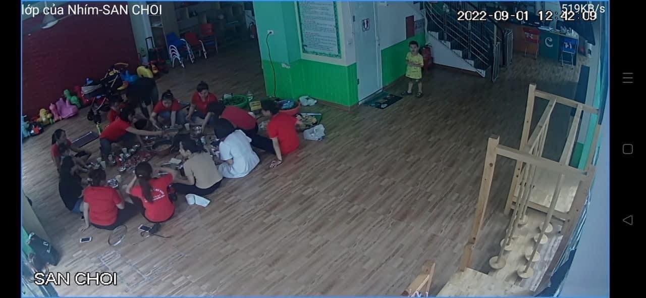 Đây là ảnh chụp cam các cô trường mầm non con nhà mình đang học. Có lẽ sắp vào năm học mới nên các cô tổ chức một bữa liên hoan nho nhỏ, nghỉ lễ 2-9 luôn.