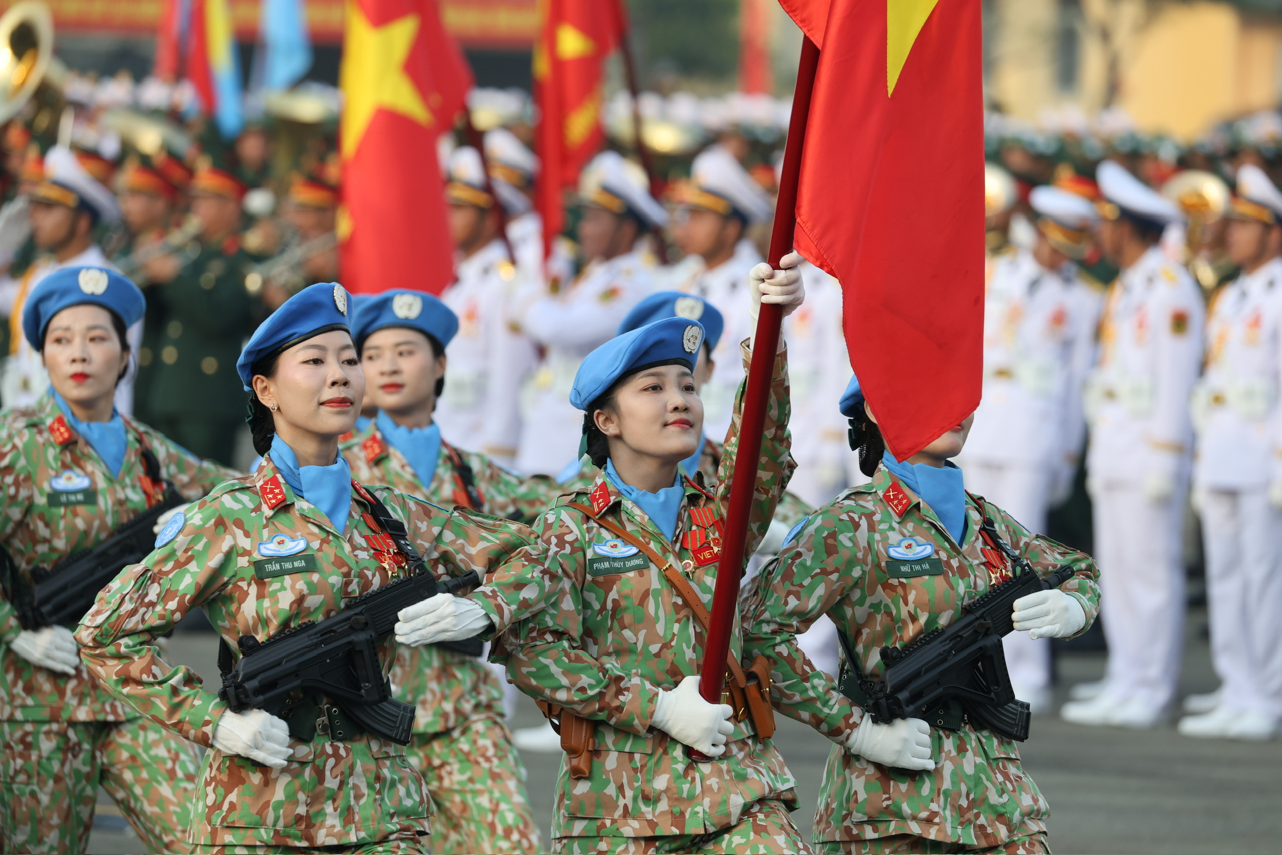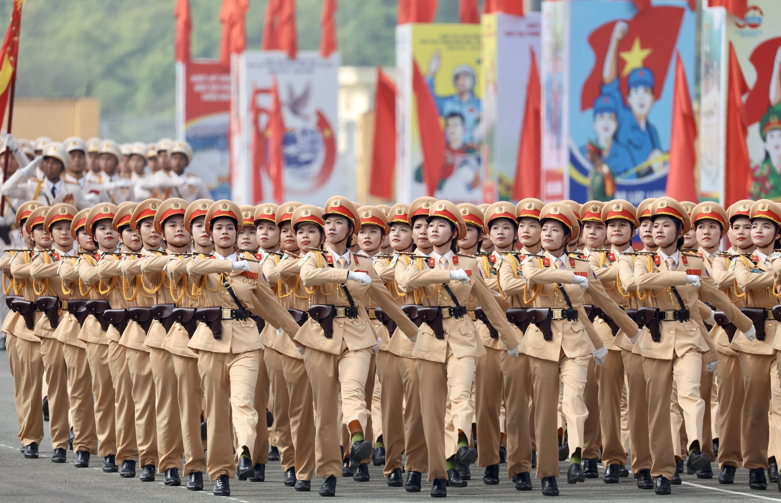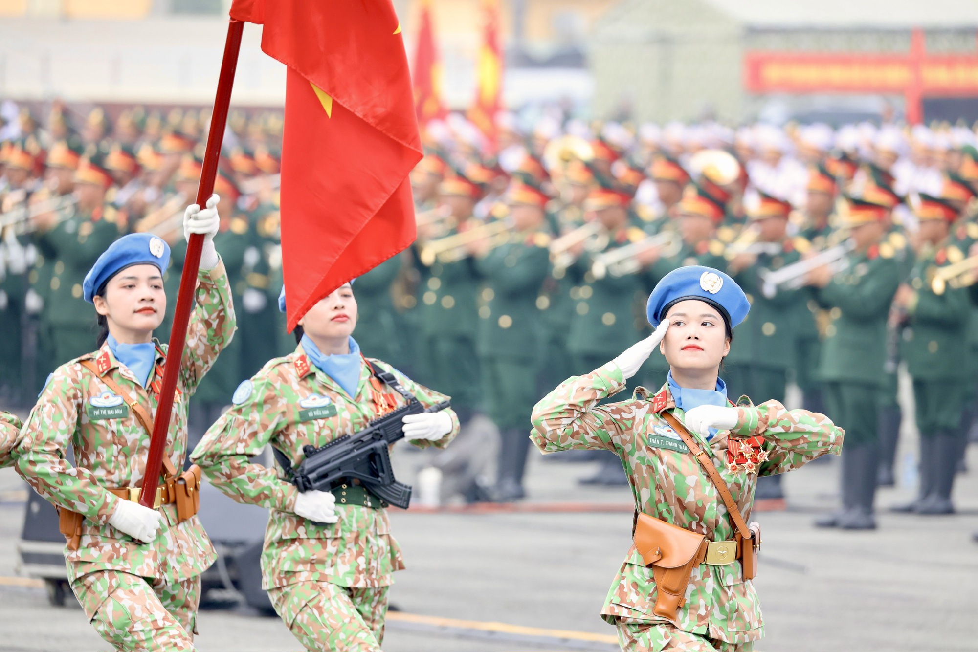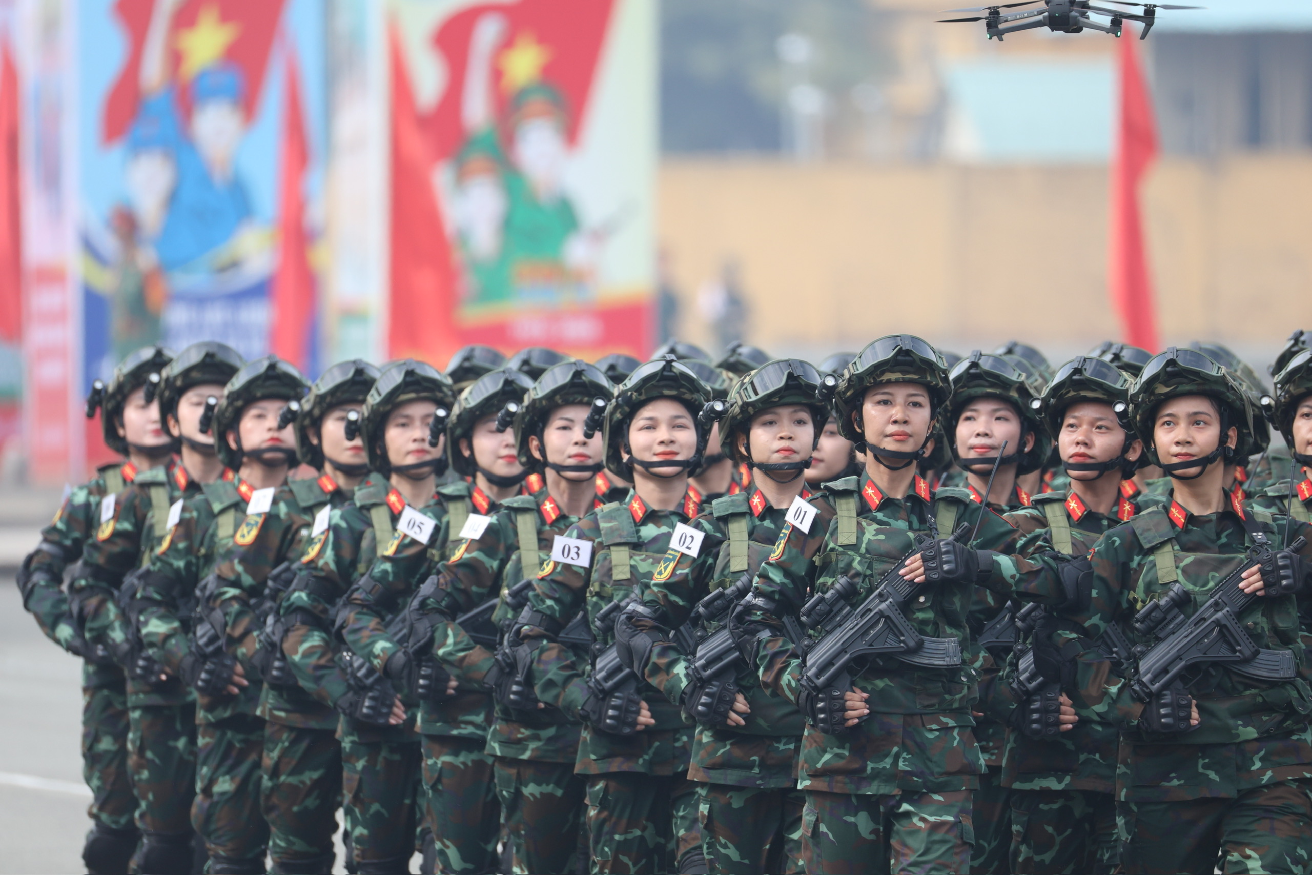Trong buổi hợp luyện sáng 16/4 tại Trung đoàn Không quân 935 (Biên Hòa, Đồng Nai), các khối diễu binh nữ gây ấn tượng mạnh với đội hình chỉnh tề cùng vẻ đẹp rạng rỡ trong quân phục đồng bộ.