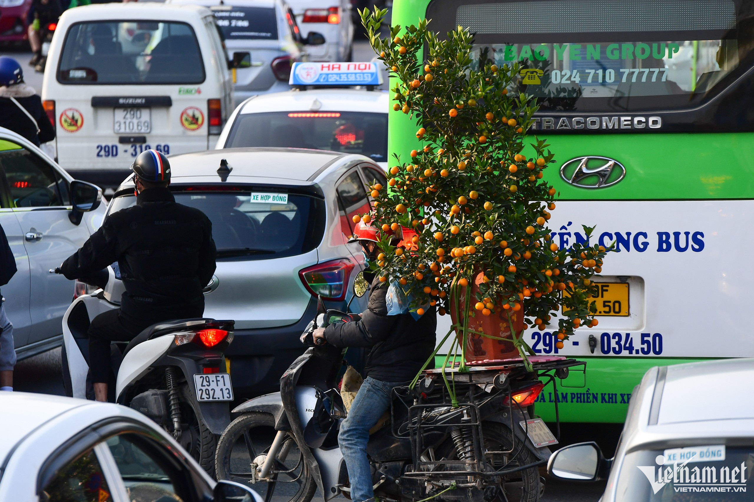 Ra đường Hà Nội, mọi hướng trước mặt đều kẹt cứng phương tiện nhưng vẫn phải lao vào là tình cảnh của người tham gia giao thông ngày giáp Tết.