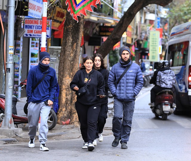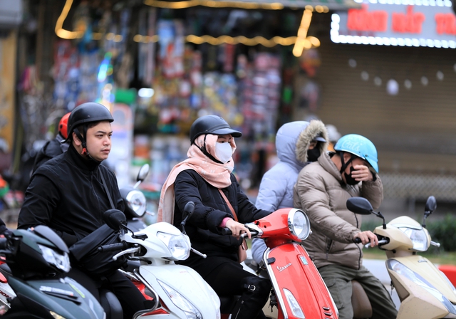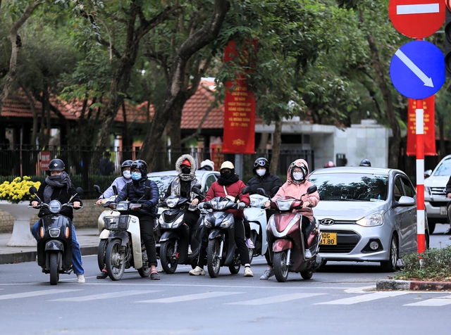 Dù đã mặc áo khoác, đeo găng tay, quấn khăn kín mít nhưng nhiều người vẫn cảm nhận rõ không khí lạnh ngoài trời.