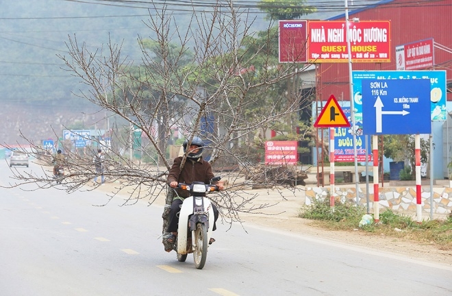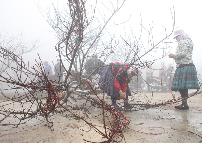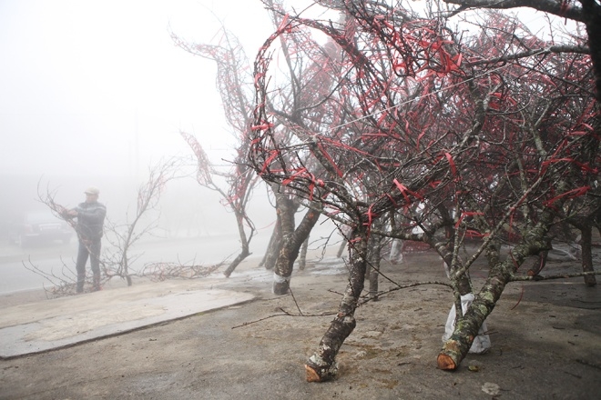 Đây cũng là dịp các lái buôn từ Hải Phòng, Hưng Yên, Thái Bình, Hà Nội lên vùng núi cao để thu gom đào. |
