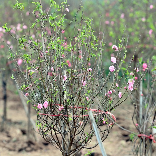 Cũng theo dân trồng đào, năm nào cũng có đào nở sớm với số lượng ít để phục vụ người dân. Đây là những gốc đào không được chăm sóc kỹ hoặc được nông dân chủ động tuốt lá sớm giúp cây bung hoa sớm.