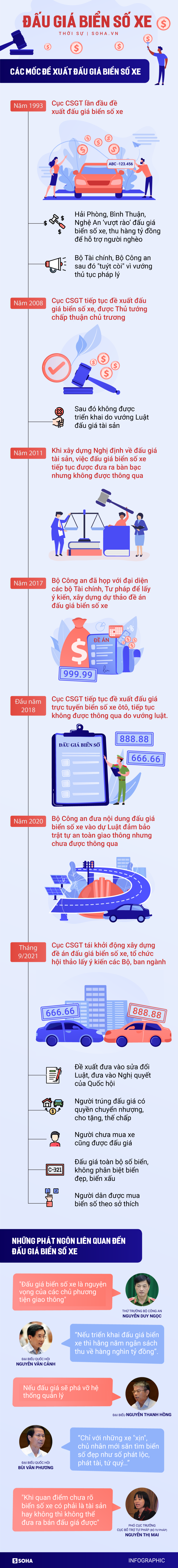 Đấu giá biển số xe lần đầu được Cục CSGT đề xuất năm 1993, sau 28 năm với 5 lần được nhắc đến và đã xảy ra tranh luận, tuy nhiên chỉ vì lý do trái Luật nên đến nay chưa thể thực hiện được.