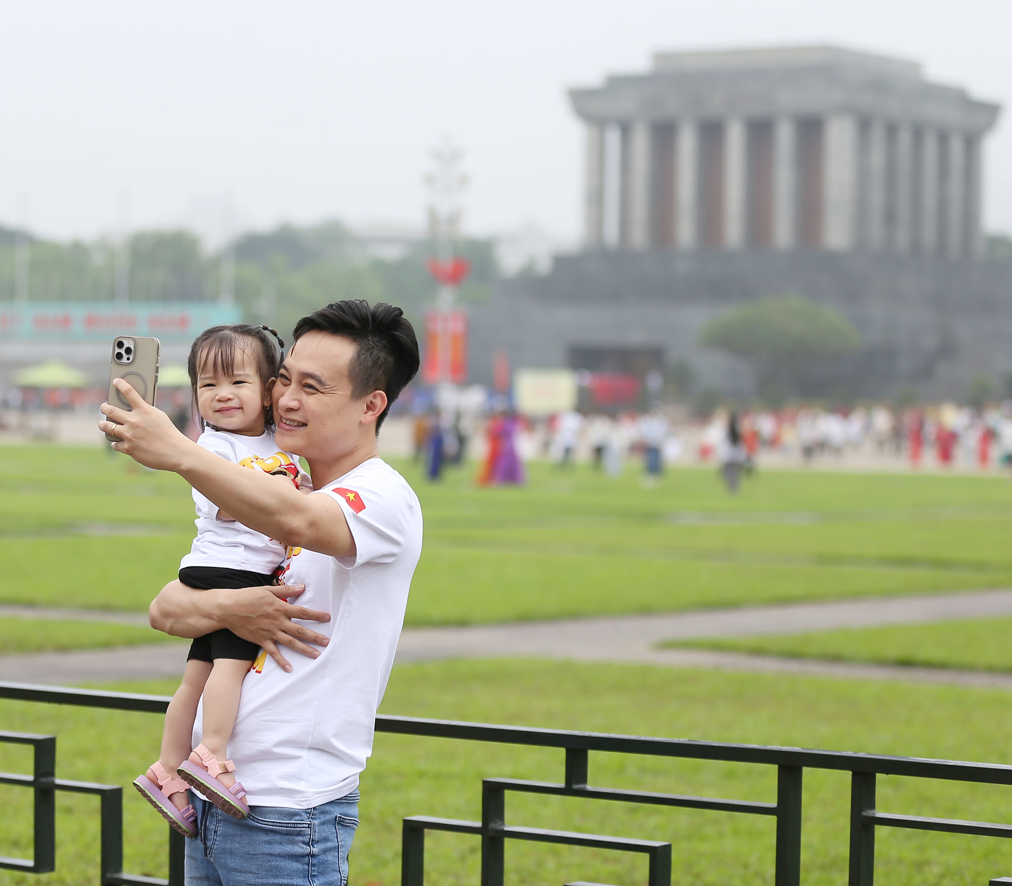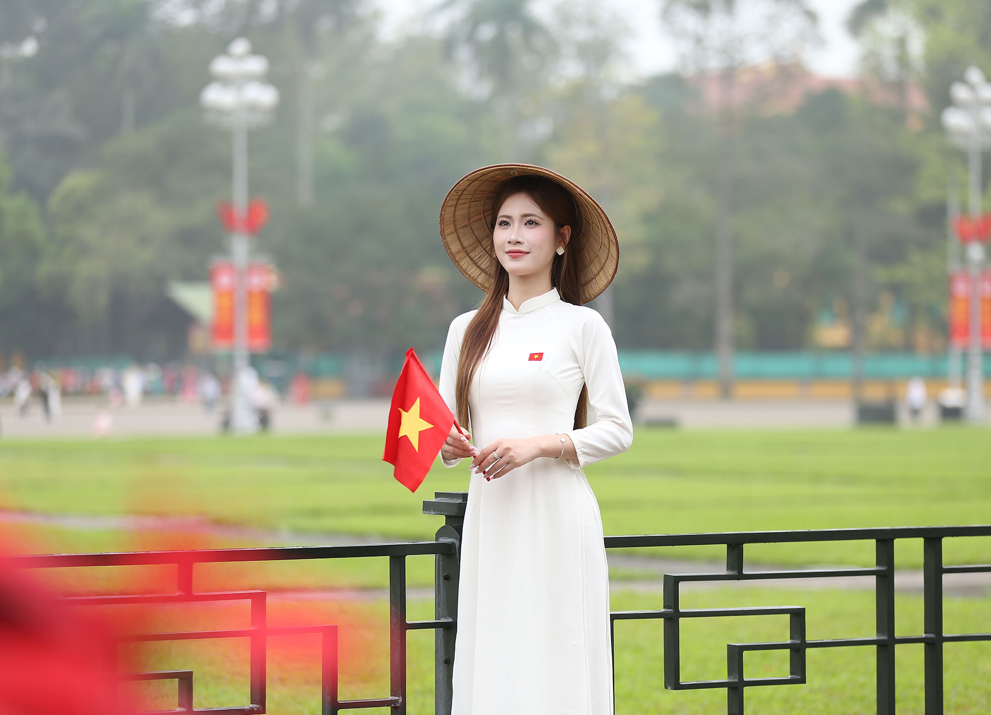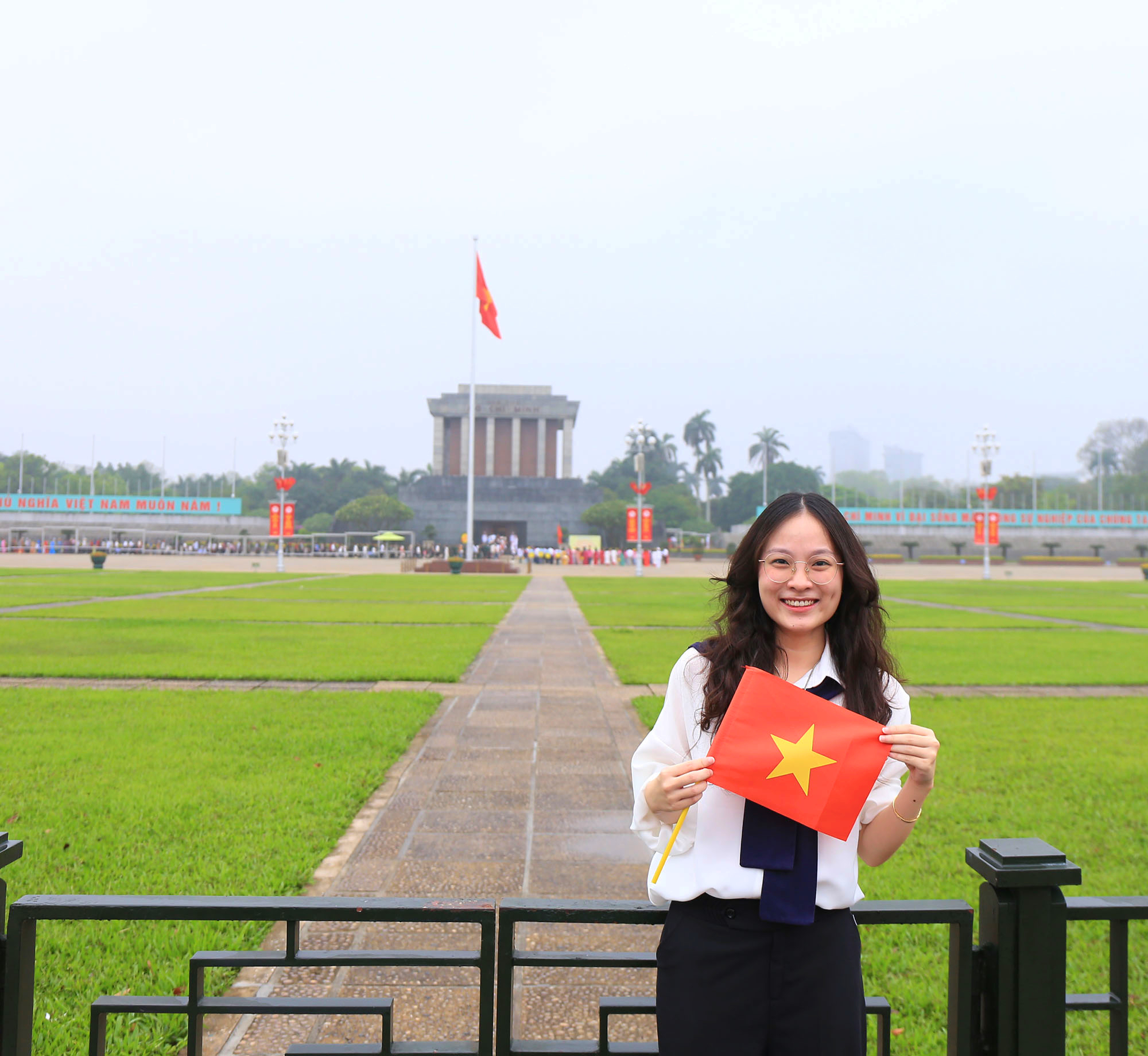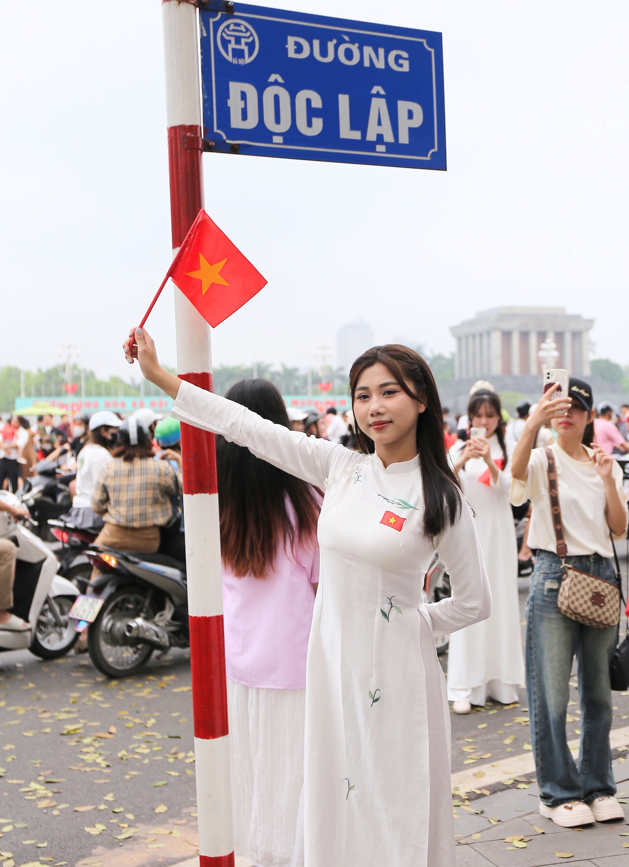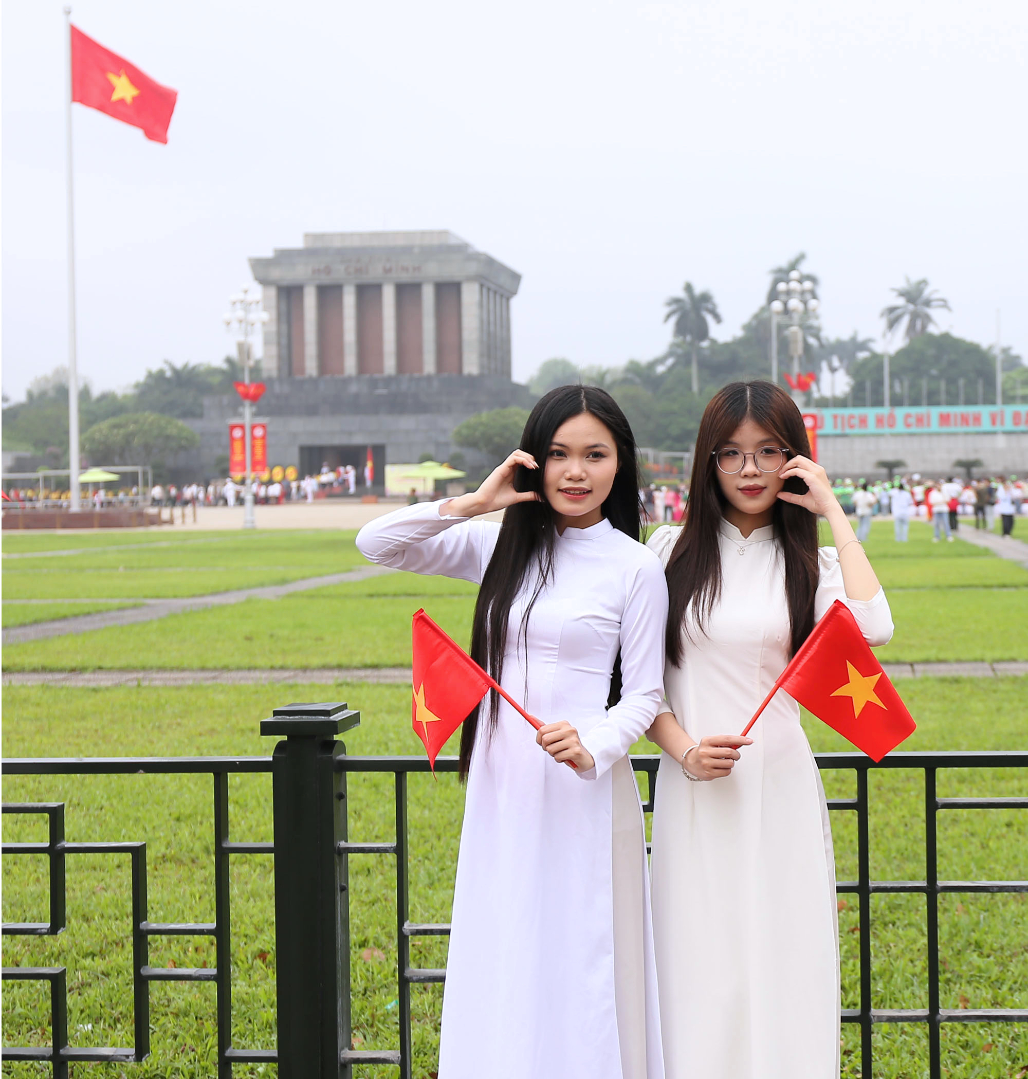 Trong ngày nghỉ cuối tuần, nhiều bạn trẻ đã dậy từ rất sớm để trang điểm, chuẩn bị trang phục và ghé thăm Lăng Bác để chụp ảnh, hưởng ứng kỷ niệm 50 năm Ngày Giải phóng miền Nam, thống nhất đất nước (30/4/1975 - 30/4/2025).
