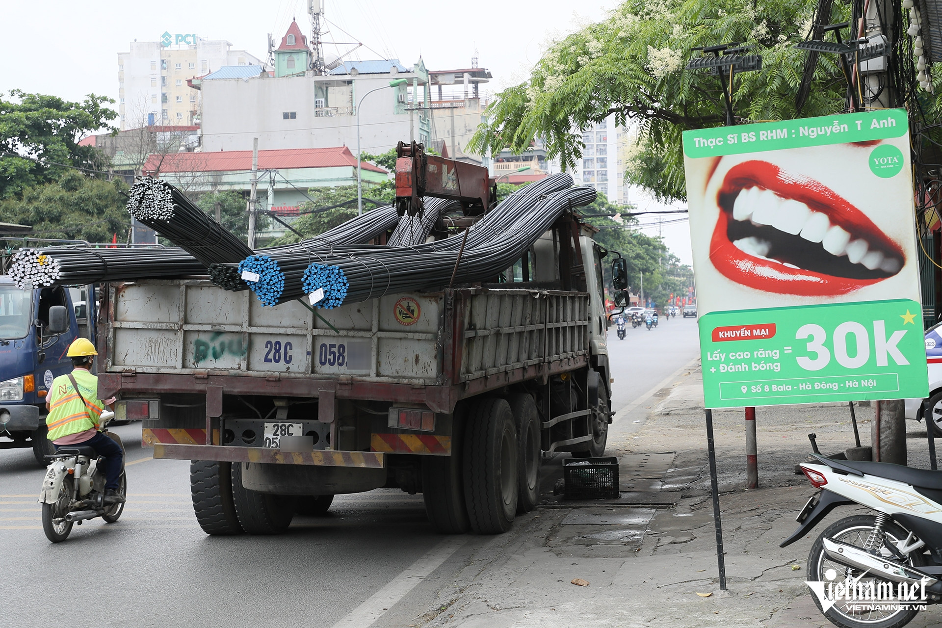Tổ công tác cũng kiểm tra ô tô chở hàng hóa không chằng buộc, chiều dài của hàng hóa vượt quá thùng sau... tiềm ẩn nguy cơ xảy ra tai nạn giao thông.
