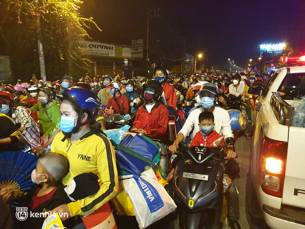 Ghi nhận của chúng tôi tại đây lúc 23h, mặc dù lực lượng chức năng giải thích và vận động người dân quay xe nhưng người dân vẫn không chấp nhận với nhiều lý do khác nhau. Hầu hết người dân về quê tự phát đều cho rằng đã “kiệt sức” suốt 4 tháng qua tại TP.HCM, không trụ nổi nữa nên phải về quê. Phòng trọ đã trả nên bây giờ cũng không thể quay lại chỗ cũ.