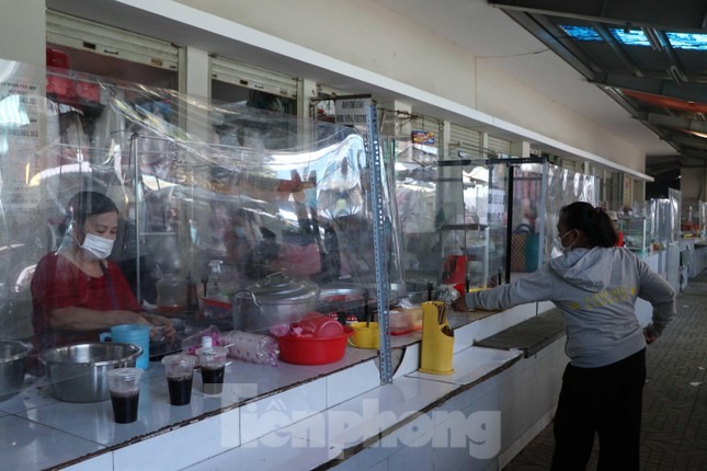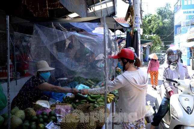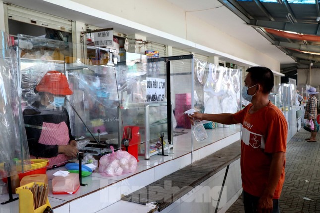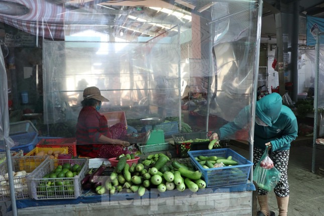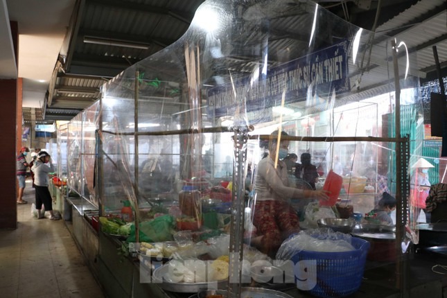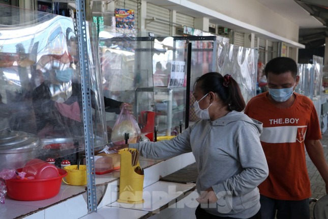 Giữa lúc đại dịch COVID-19 diễn biến phức tạp, Ban quản lý chợ truyền thống ở quận 12, TPHCM lắp vách ngăn giọt bắn, hạn chế tiếp xúc trực tiếp giữa tiểu thương và khách hàng để phòng chống COVID-19.