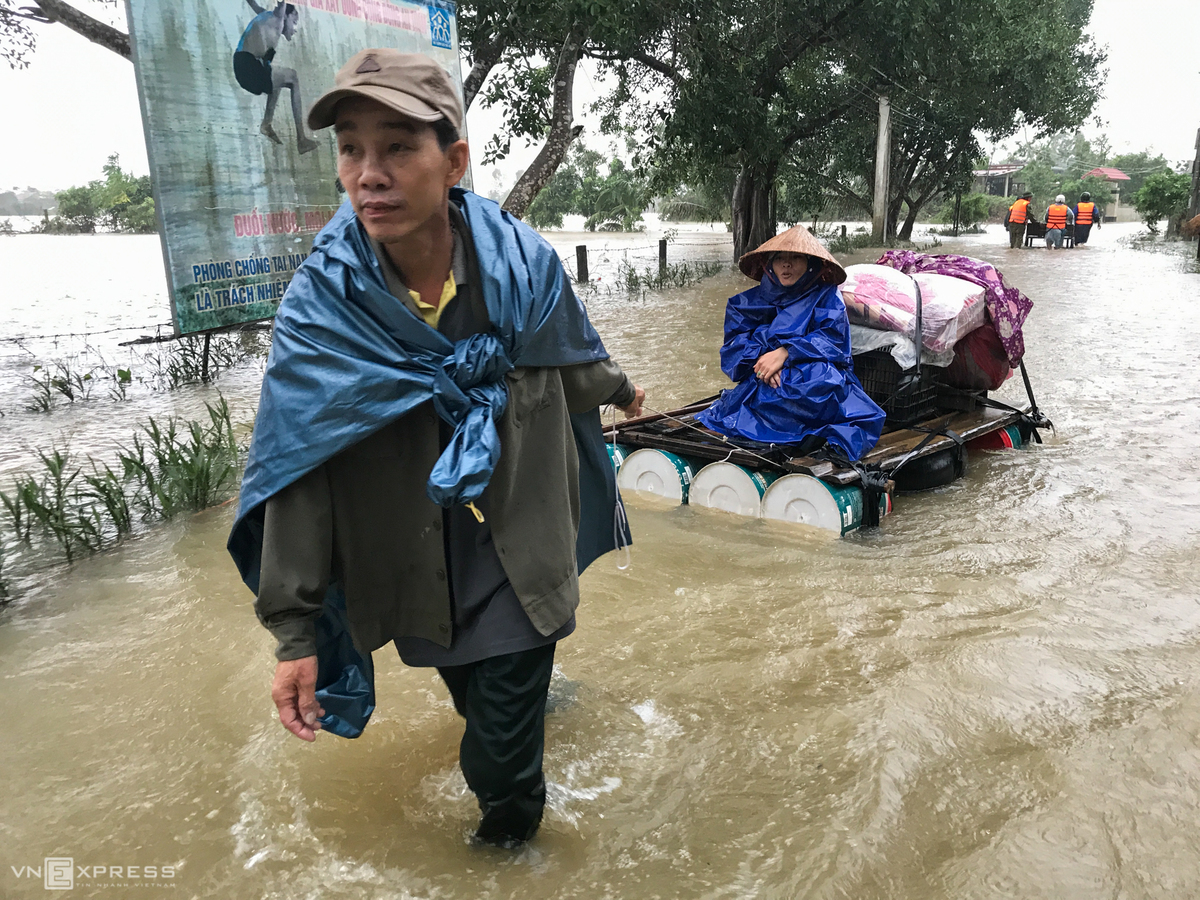 Sáng 20/10, nước thượng nguồn các con sông rút, vùng hạ lưu sông Sa Lung và Bến Hải, huyện Vĩnh Linh, tỉnh Quảng Trị lại lên, nước tràn vào nhà dân. Từ 8h sáng, nhà chức trách huy động di dân đến nơi an toàn.