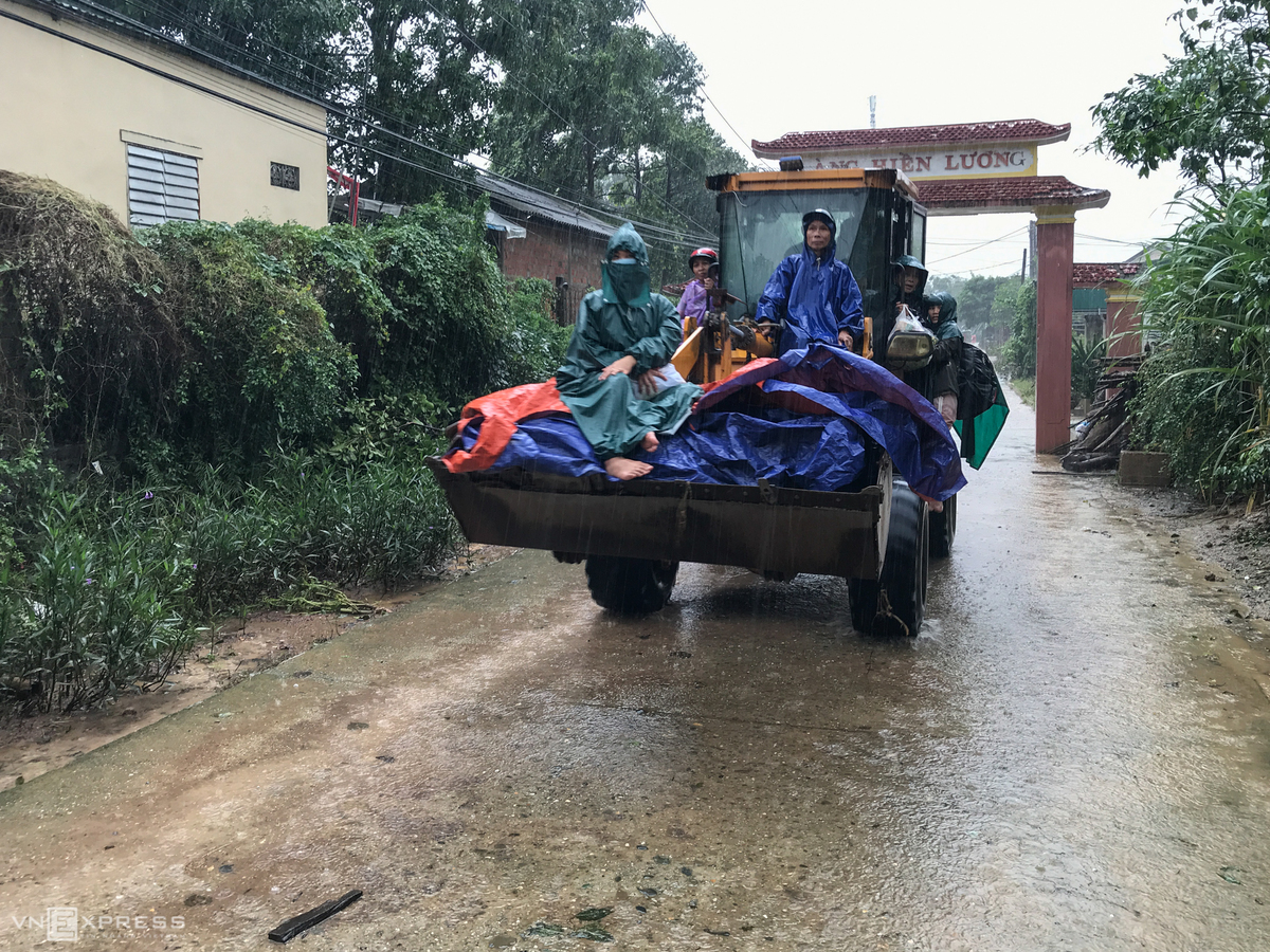 Trẻ em, người già, phụ nữ được đưa lên xe ben, xe kéo, công nông… để đến nơi cao ráo.