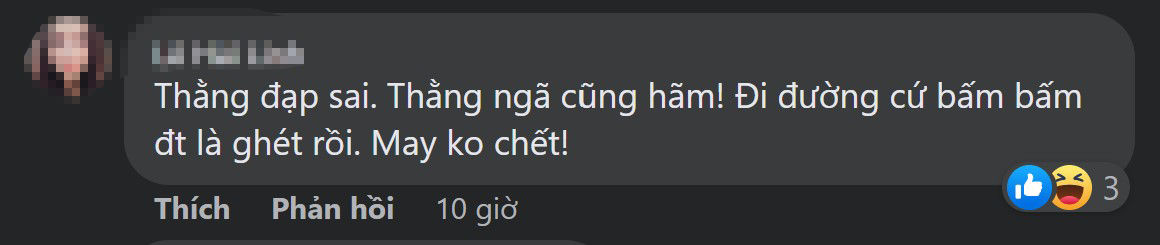 Thời điểm đến gần chiếc xe có người cầm điện thoại, thanh niên đi sau đã dùng chân tì vào ống xả phía sau xe người đàn ông kia, tuy nhiên có vẻ như mải xem điện thoại nên người này vẫn không để ý. Quá bực tức vì ý thức tham gia giao thông, cộng với việc đã "có ý" nhắc nhở nhưng người kia vẫn chỉ cắm cúi vào điện thoại nên thanh niên đi sau đã đạp vào bánh sau của người đàn ông nọ, hậu quả làm người này ngã sõng soài ra đất đúng lúc một chiếc ô tô đang đi tới. Thanh niên gây tai nạn sau đó nhanh chóng phóng xe đi mất bỏ mặc người đàn ông ngơ ngác không hiểu chuyện gì xảy ra.