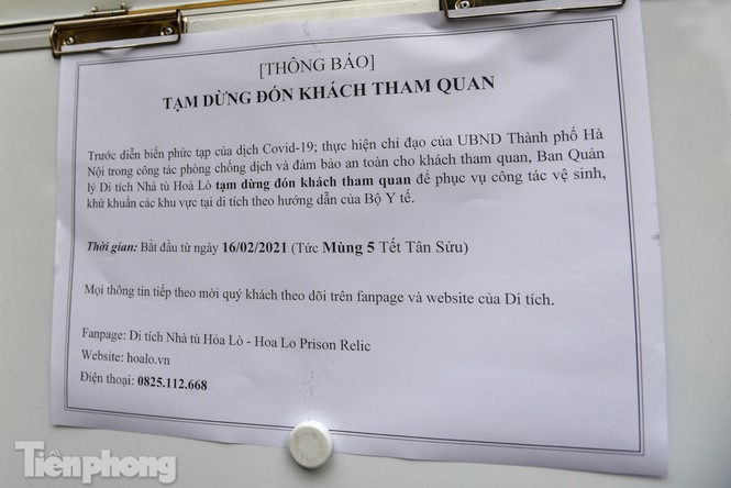 Thực hiện chỉ đạo của UBND thành phố Hà Nội, các điểm di tích, chùa, đền như Văn Miếu-Quốc Tử Giám, đền Ngọc Sơn, Hoàng Thành Thăng Long, Nhà tù Hỏa Lò, đình Kim Liên, đền Bạch Mã đều cửa đóng then cài ngoài cửa với một tấm thông báo "tạm dừng hoạt động" do COVID-19.