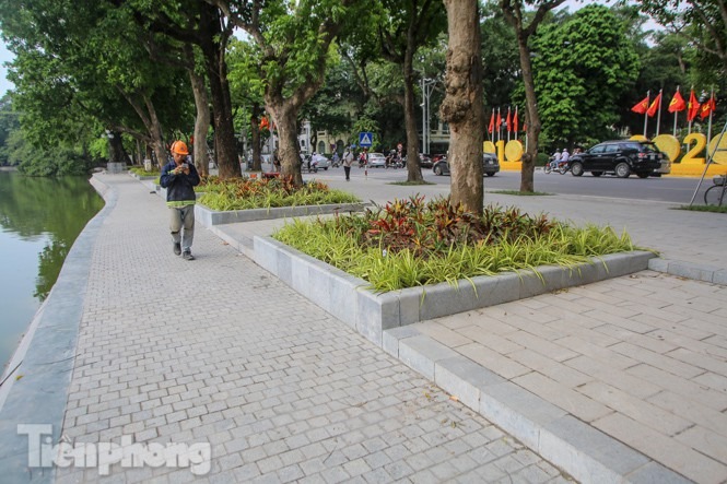 "Dự án đầu tư xây dựng, cải tạo, chỉnh trang khu vực xung quanh hồ Hoàn Kiếm" được triển khai vào giữa tháng 4/2020, bắt đầu bằng hạng mục kè thí điểm bằng cấu kiện bê tông cốt sợi. Sau khi hạng mục này được hợp long hoàn thành, hạng mục lát đá vỉa hè, trồng cây xanh... chuẩn bị "về đích".