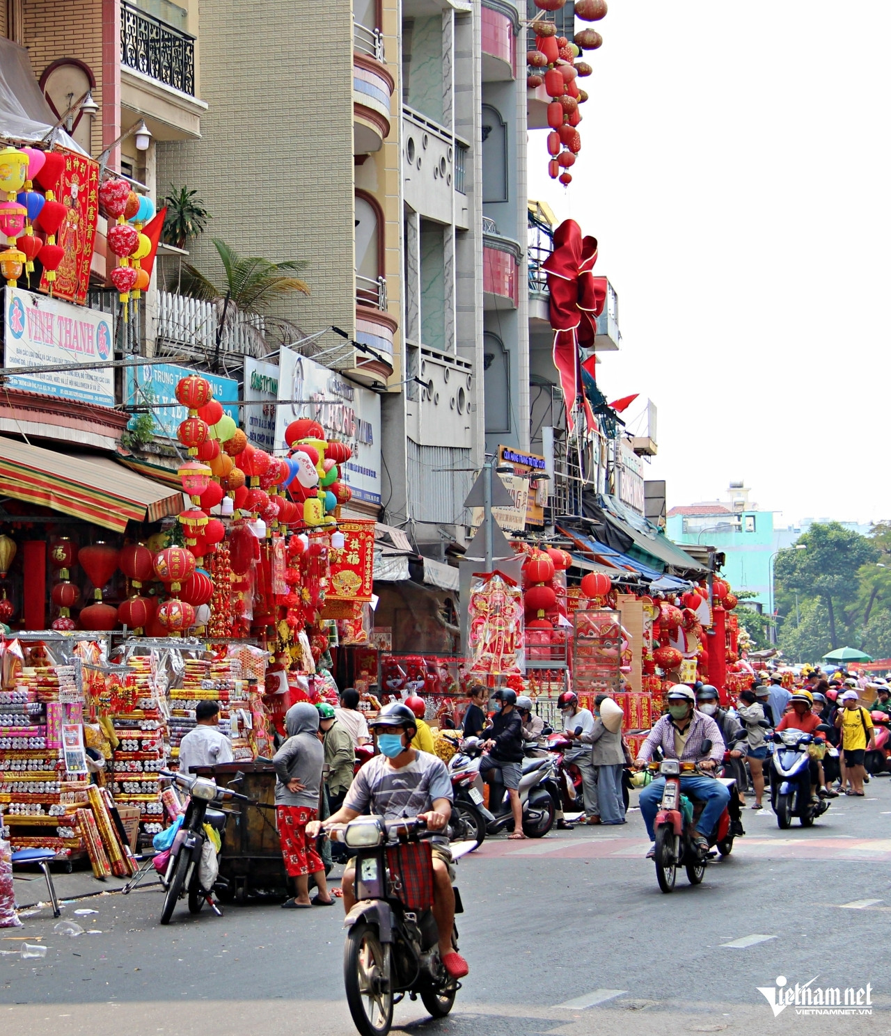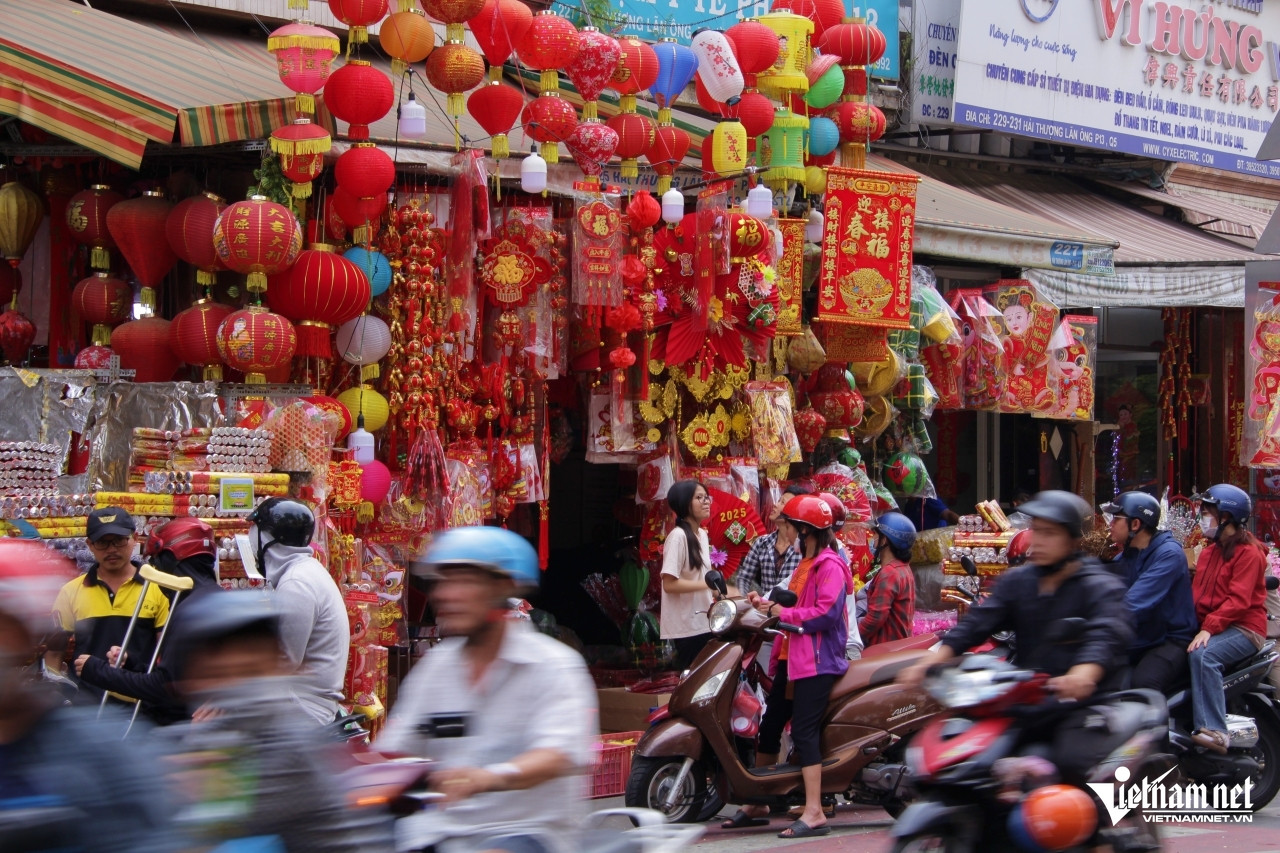 Ngày thường, con đường này là nơi tập trung các cửa hàng bán thuốc Bắc. Mỗi độ Tết đến, nơi đây lại trở thành điểm kinh doanh vật phẩm trang trí rực rỡ sắc màu.