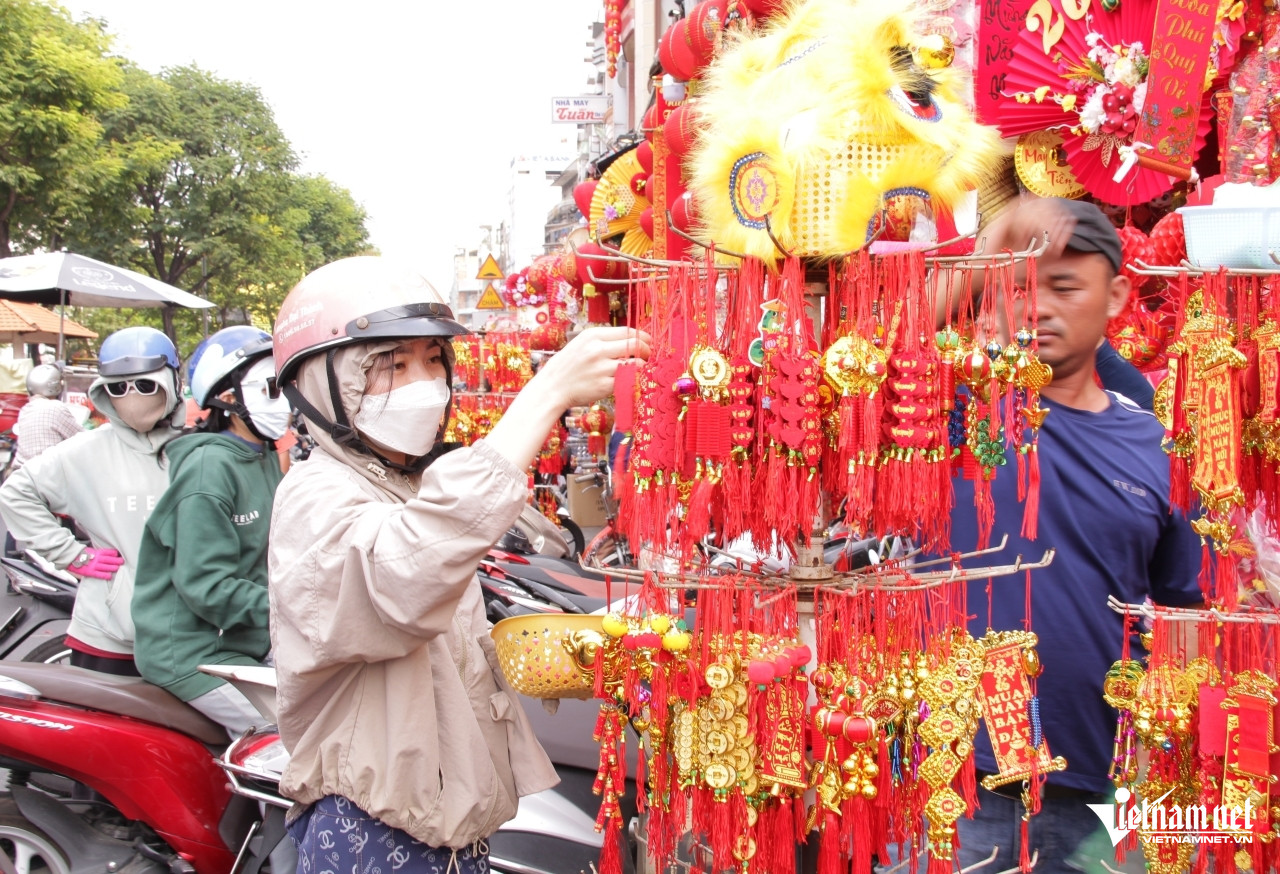 Trong khi đó, do nhiều việc vào cuối năm, công ty cho nghỉ trễ, chị Thảo (35 tuổi) đến đường Hải Thượng Lãn Ông mua đồ trang trí Tết trễ hơn mọi năm.