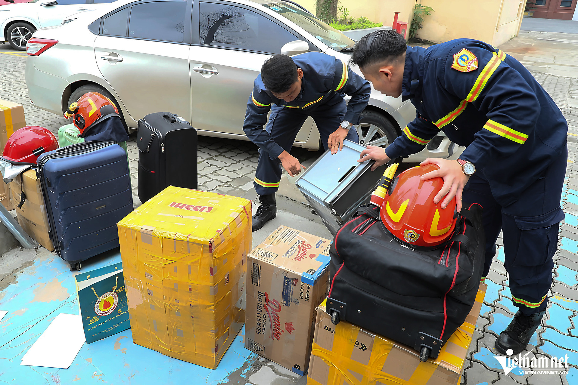 "Từ khi nhận lệnh lên đường làm nhiệm vụ đến nay chưa đầy 24 giờ nhưng chúng tôi luôn sẵn sàng, các trang thiết bị đoàn mang theo gồm: Banh, kìm cắt, radar dò tìm... chuyên để cứu hộ cứu nạn trong các vụ động đất, sập, đổ, môi trường phức tạp", Đại úy Thiều Thanh Thuận nói.
