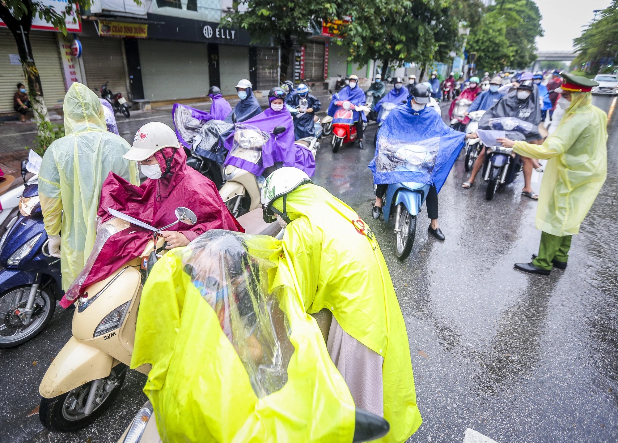 10/08/2021 21:46Đội mưa đi làm, nhiều người ngậm ngùi "quay xe" vì thiếu giấy xác nhận lịch trực, lịch làm việc