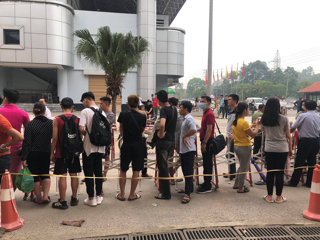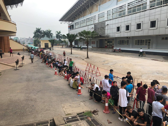 Mặc dù theo thông báo của ban tổ chức, phải đến 14h chiều mới bán vé, song từ sáng sớm, trước cổng nhà thi đấu, hàng trăm người dân xếp hàng để chờ mua được tấm vé xem trận U23 Việt Nam. Đến trưa, mặc dù thời tiết khá nắng nóng song lượng người đổ về điểm bán vé không có dấu hiệu giảm.