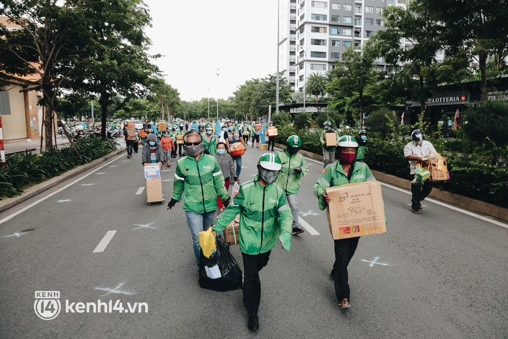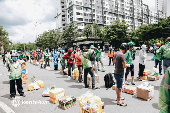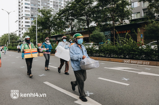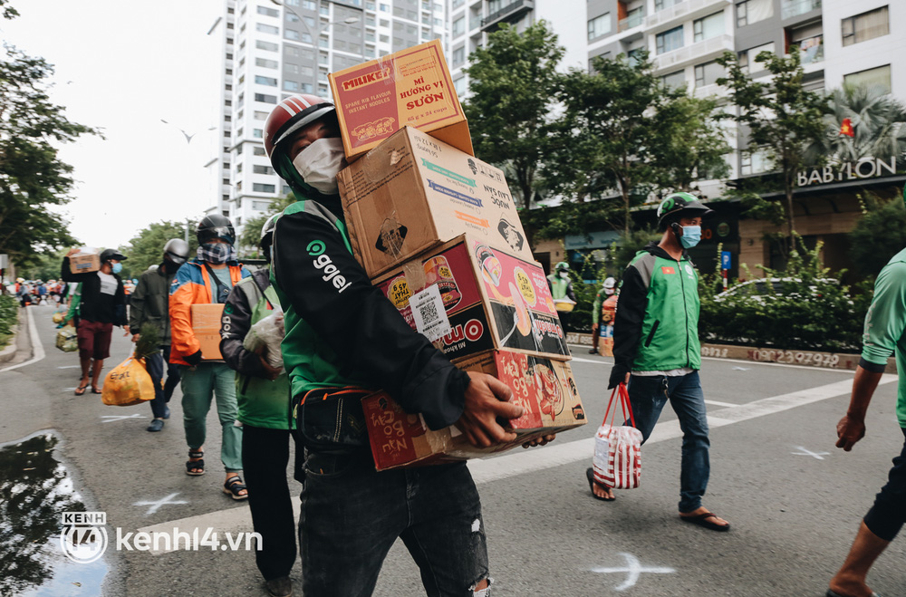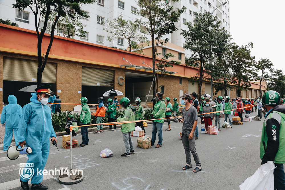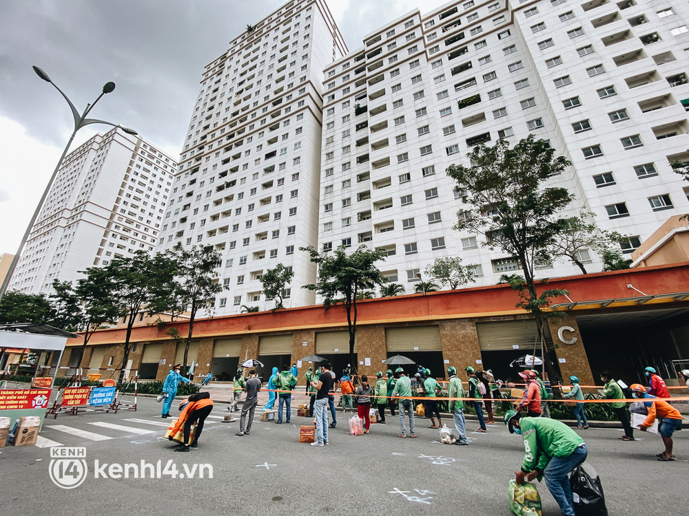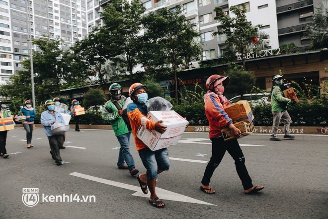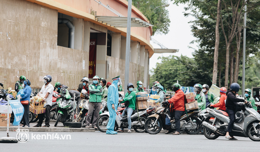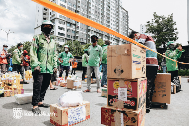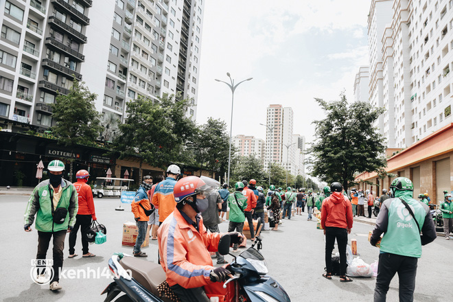Những ngày qua, khi khu chung cư thuộc khu vực tái định cư Bình Khánh (TP. Thủ Đức, TP.HCM) được trưng dụng thành quần thể bệnh viện dã chiến thu dung số 3, 6, 7, 8, 9 điều trị các ca mắc Covid-19, hàng trăm shipper cũng có mặt tại đây thường xuyên để giao hàng cho các bệnh nhân.