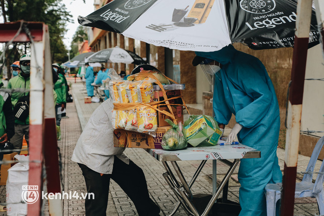 Do thấu hiểu được cảnh thiếu thốn của các bệnh nhân Covid-19 trong bệnh viện dã chiến nên hầu hết các shipper đều rất nhiệt tình, ràng buộc dây chắc chắn cho gói hàng, chịu khó đứng dưới trời nắng khá lâu để xếp hàng chờ đưa đồ vào trong.