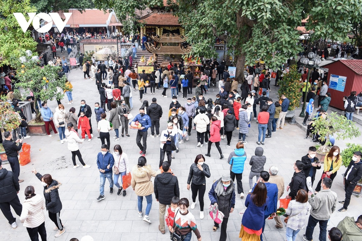| Dòng người vẫn nườm nượp, nô nức kéo về Bắc Ninh đi lễ đền Bà Chúa Kho với mong muốn “vay tiền, xin lộc” bà đầu năm. |