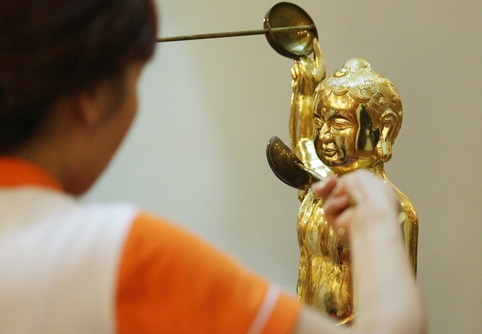 09/05/2017 16:54Dòng người xếp hàng tắm tượng Phật ở chùa Bằng