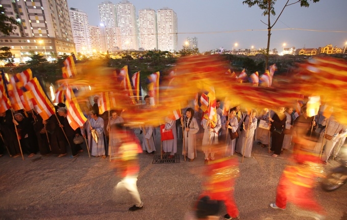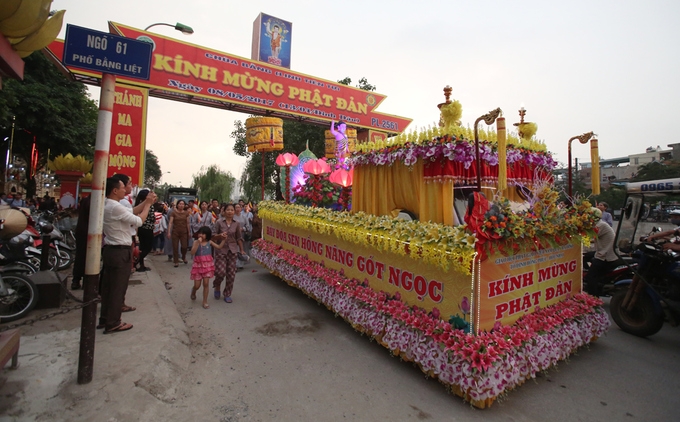 | Ngày 8/5, tại chùa Bằng (Linh Tiên Tự- số 63 phố Bằng Liệt, Hoàng Liệt, Hoàng Mai, Hà Nội) đã tổ chức Đại lễ Phật Đản với sự tham dự của hàng nghìn tăng ni, phật tử. Một trong những nghi thức trong khuôn khổ Đại lễ là tắm Phật đã diễn ra trang trọng. Các tăng ni, phật tự xếp hàng dài, chờ tới lượt tự tay múc gáo nước hoa nhài tắm tượng Phật, cầu mong những muộn phiền lo toan của đời người theo đó trôi đi. Nhiều người cho con cháu tham gia vào nghi thức này với tâm niệm thành kính. Tại buổi lễ, Hòa thượng Thích Bảo Nghiêm, Phó chủ tịch Hội đồng trị sự Trung ương Giáo hội Phật giáo Việt Nam, Trưởng ban trị sự Thành hội Phật giáo Hà Nội đã tuyên đọc thông điệp, trong đó có đoạn: "Phật đản là thời gian mỗi người con Phật có cơ hội ôn lại lịch sử của Đức Bản sư để chiêm nghiệm và hành trì, để sống theo lời Ngài chỉ dạy, đi theo con đường Ngài đã đi"... Hàng nghìn tăng ni, phật tử tề tựu ở sân chùa. Các phật tử đã tỏ lòng tôn kính, hân hoan của người con Phật trong dịp Đại lễ. Lễ niêm hương bạch Phật, tụng kinh Phật Đản. Chùa Bằng không chỉ là nơi để tăng ni, phật tử thăm quan, lễ bái mà còn tổ chức các khóa tu ngắn hạn. "Mùa Phật Đản hàng năm, tôi cùng với con cháu đi 4 ngôi chùa lớn, với mong muốn răn dạy con cháu hướng tới chữ tâm, chữ thiện, biết sống hiếu thuận, kính trên nhường dưới theo lời Đức Phật dạy" Bà Hà Thị Loan (Khâm Thiên) chia sẻ. Nghi lễ rước Phật quanh làng Bằng. Đoàn rước kéo dài cả cây số, bước đi trong tiếng trống múa lân rồng. |