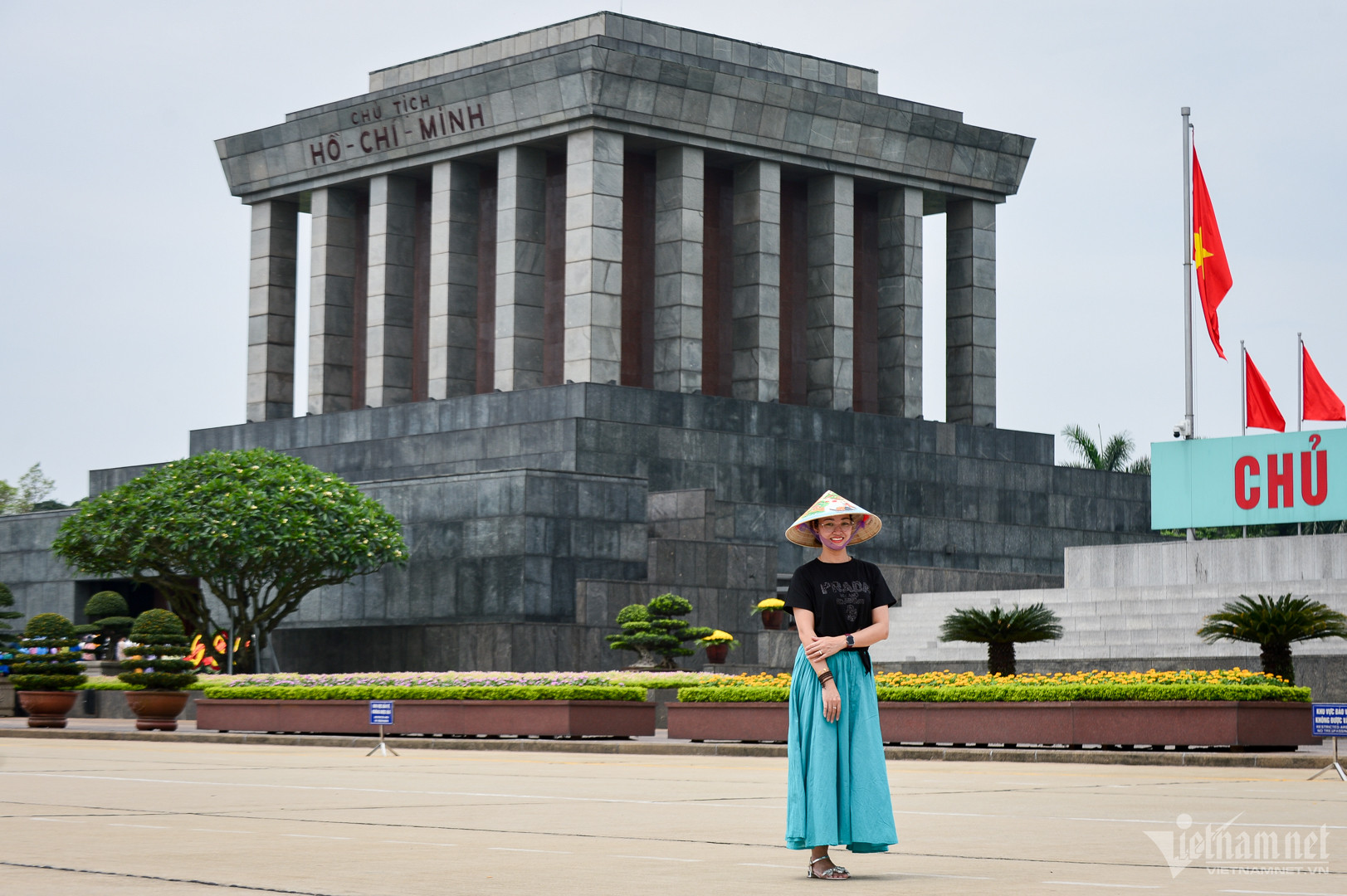 Trong điều kiện thời tiết đẹp, mát mẻ, nhiều đoàn du khách tập trung tại cổng Bảo tàng Hồ Chí Minh (Hà Nội) để xếp hàng vào Lăng viếng Bác nhân ngày nghỉ lễ, sáng 1/5.