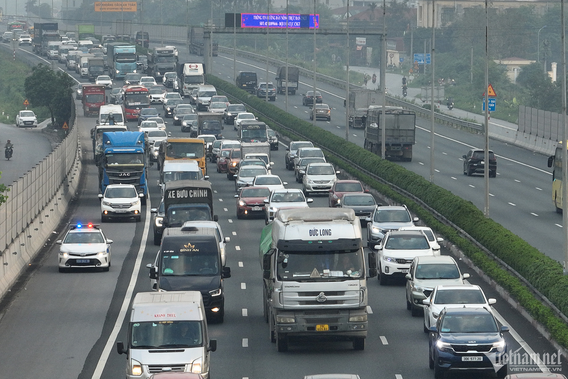 Trung tá Nguyễn Viết Nhiên, Phó đội trưởng Đội Tuần tra kiểm soát giao thông đường bộ cao tốc số 3 (Cục CSGT) cho biết, từ sáng sớm, trên tuyến cao tốc Pháp Vân - Cầu Giẽ có một ô tô bị sự cố nên dòng phương tiện bị ùn ứ.