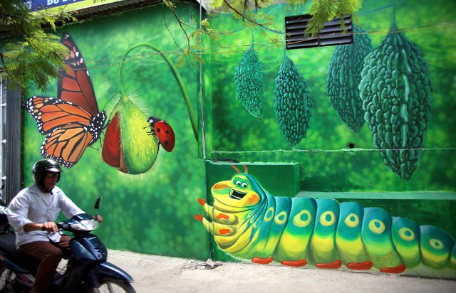 Trong khi đó, trao đổi với PV, anh Hoàng Văn Chinh - thành viên nhóm họa sĩ cho biết: "Đến thời điểm hiện tại chúng tôi đã vẽ được 11 bức tranh tường với nhiều chủ đề khác nhau và còn khoảng 5 bức nữa sẽ hoàn thành dự án".
