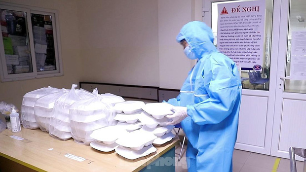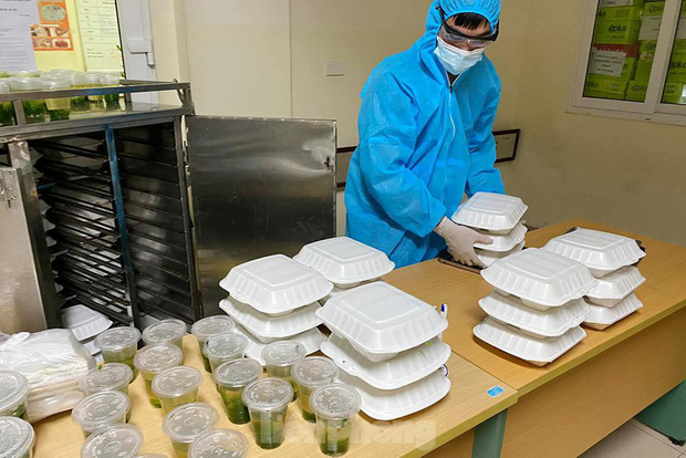 Mỗi bữa có hàng nghìn suất ăn được đưa vào bệnh viện K để phục vụ bệnh nhân, người nhà cũng như đội ngũ y, bác sĩ đang bị cách ly tại đây.