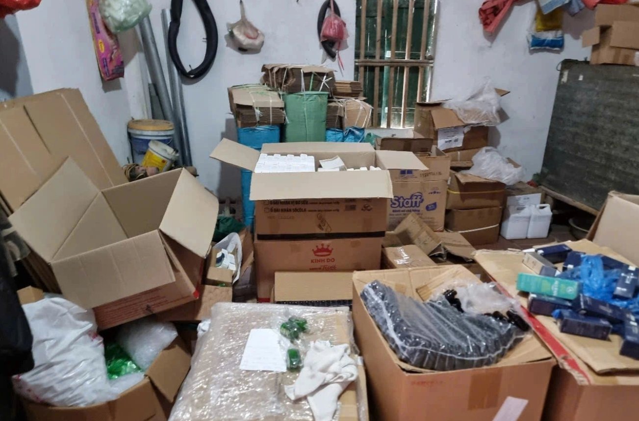 Khám xét hiện trường, cơ quan chức năng thu giữ gần 2.500 sản phẩm thành phẩm thuộc 13 loại mỹ phẩm khác nhau, trong đó có: Kem tẩy trang, kem dưỡng da, serum trị mụn Demi Skin 3 days, SEIMY skin 7 days plus, KT'skin serum, lăn khử mùi STOPIREX, Sạch hôi nách Cú đấm thép, khử mùi Hải Sen...