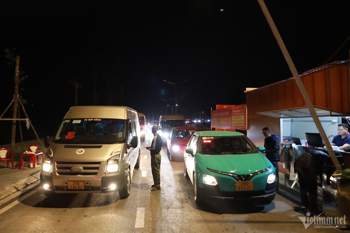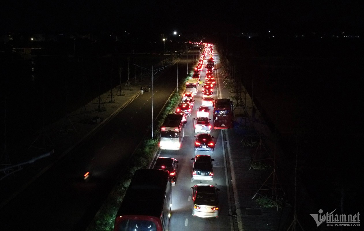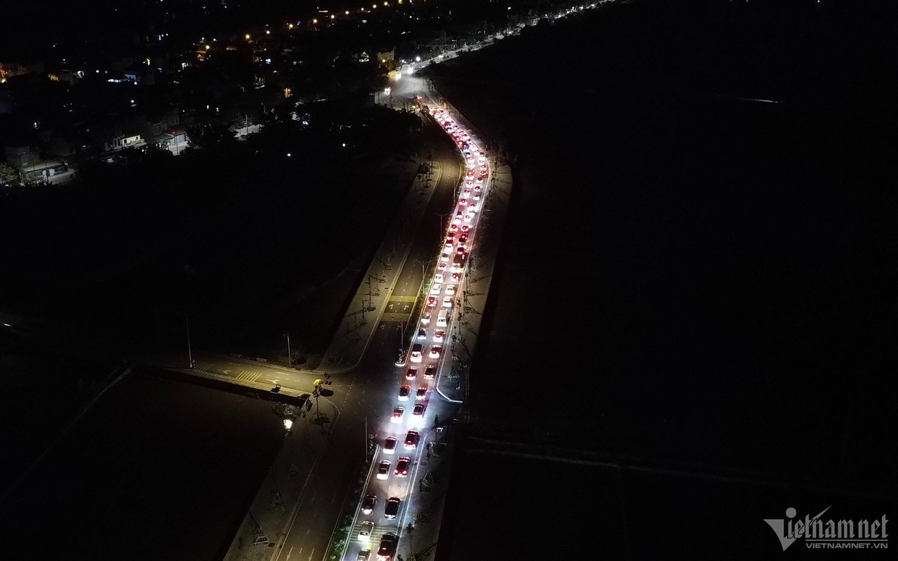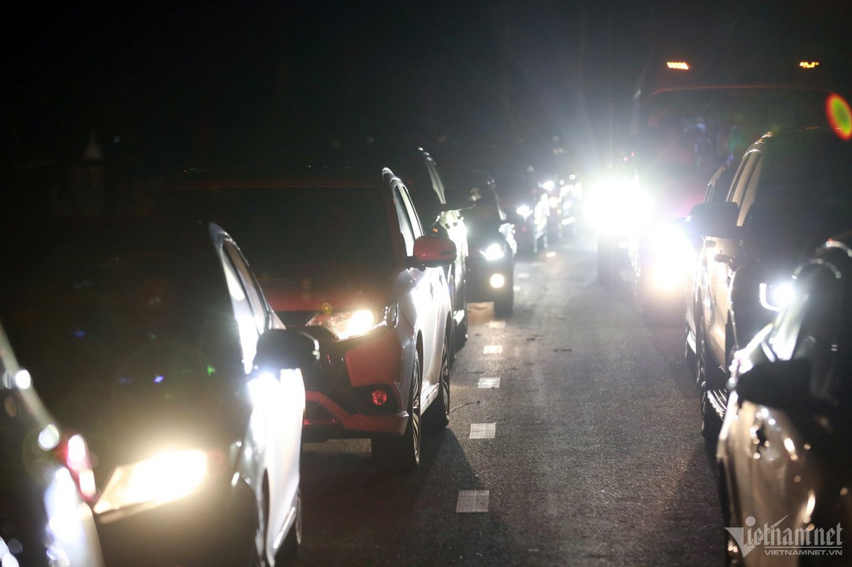 Do lượng khách đến chùa Hương (Mỹ Đức, Hà Nội) đông đúc, hàng nghìn người bị ùn ứ, mất nhiều giờ mới thoát khỏi bãi gửi xe, tối mùng 4 Tết.